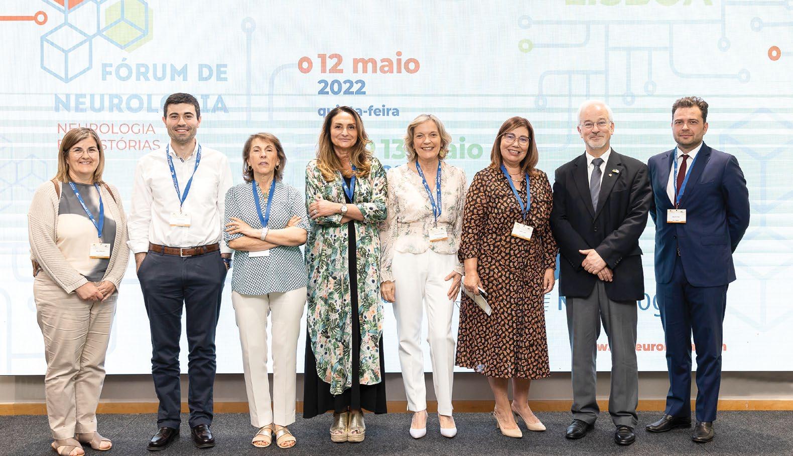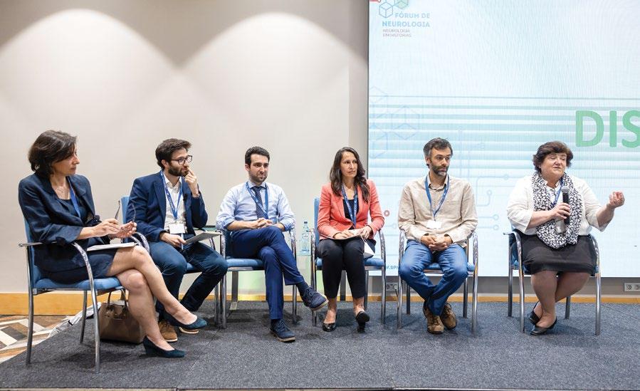 Alguns oradores e moderadores do Fórum de Neurologia 2022: À frente – Dr. Miguel Rodrigues, Prof. Rui Araújo, Dr.ª Isabel Luzeiro, Dr.ª Helena Gens e Dr. Filipe Palavra (direção da SPN). 2.ª fila – Dr.ª Ana Morgadinho, Dr.ª Catarina Bernardes, Dr.ª Isabel Fineza e Prof.ª Ana Verdelho. 3.ª fila – Dr. Luís Negrão, Dr.ª Elsa Parreira, Prof.ª Maria José Sá e Dr. Carlos Andrade. 4.ª fila – Dr. André Leitão, Dr.ª Catarina Fernandes, Dr.ª Marina Magalhães e Dr. José Vale. 5.ª fila – Dr.ª Almerinda Rodrigues, Dr. Gustavo Cordeiro, Dr. Pedro Faustino e Dr.ª Sofia Reimão. 3.a EDIÇÃO N.º 31 | Ano 12 | quadrimestral | Setembro de 2022 | € 0,01 WWW.SPNEUROLOGIA.COM Jornal da spn Correio