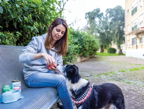 ímpeto de ajudar e procurou a União Zoófila. “Podemos ajudar as associações com tempo e dinheiro. Comecei por ajudar com dinheiro, porque, na altura, o meu tempo livre era muito escasso”, justifica. Assim, tornou-se madrinha da cadela Suricata.