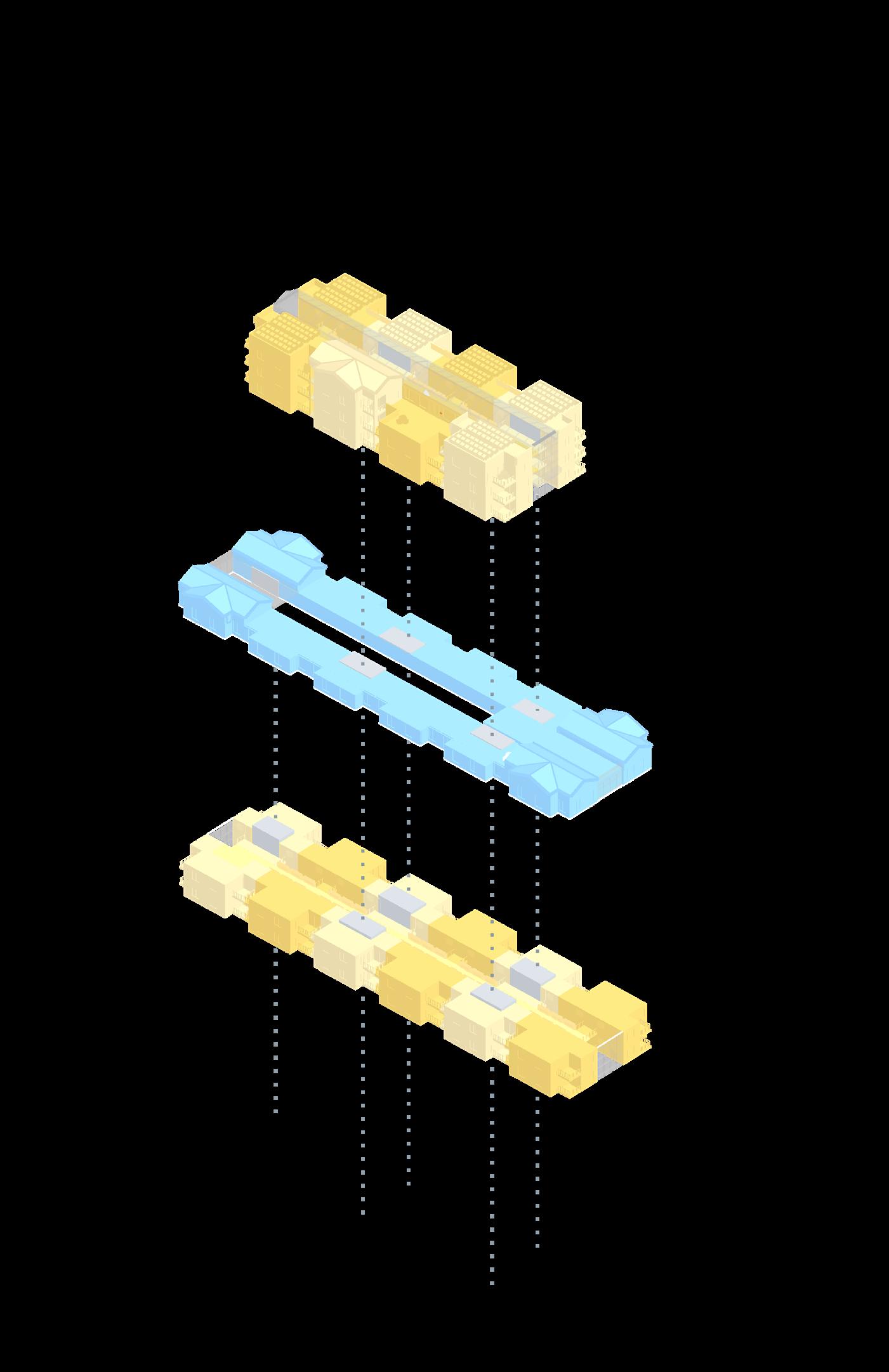 The southern side of both residential towers make the most use of the sun by enclosing them in an ETFE Greenhouse structure with operable shading and ventilation.