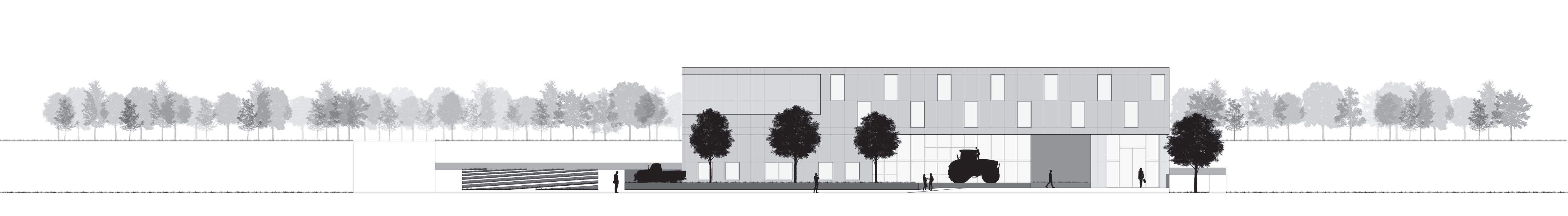 This Museum is located in Cico Park in Manhatttan, Kansas. It serves as an Agricultural Museum that can display all sizes of equipment. The museum itself draws the visitors in from both the main parking lot and also Cico Park by the use of angled sidewalks that guide and funnel the visitors towards the entrance. Once inside the museum, visitors can experience an open floor plan that provides views to all of the public exhibition spaces. These spaces are exposed from the interior because of the glazed facade that surround the outdoor exhibition that is embedded within the space. This outdoor exhibition is the central focus in the design.