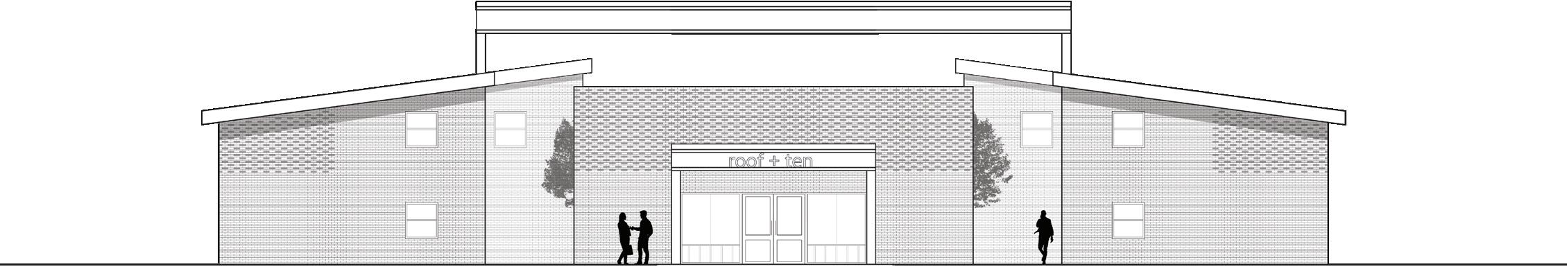 The roof + ten housing units are located in Eureka, a small rural community in Kansas. The name of the housing units comes from the central theme of “being under one roof”. While every resident or set of residents has their own personal unit, the structure that hangs over the central amphitheater acts as the roof the connects the residents together. The amphitheater is a space that is meant to create community as concerts, movie nights, and more can occur in this space. The brick materials on the outermost-exterior walls connect back to the brick used on main street. This creates a sense of familiarity for the citizens of the town. To contrast the brick, the innermost exterior walls are made of light grey aristolath metal panels. This highlights the exterior spaces and creates a brighter atmosphere.
