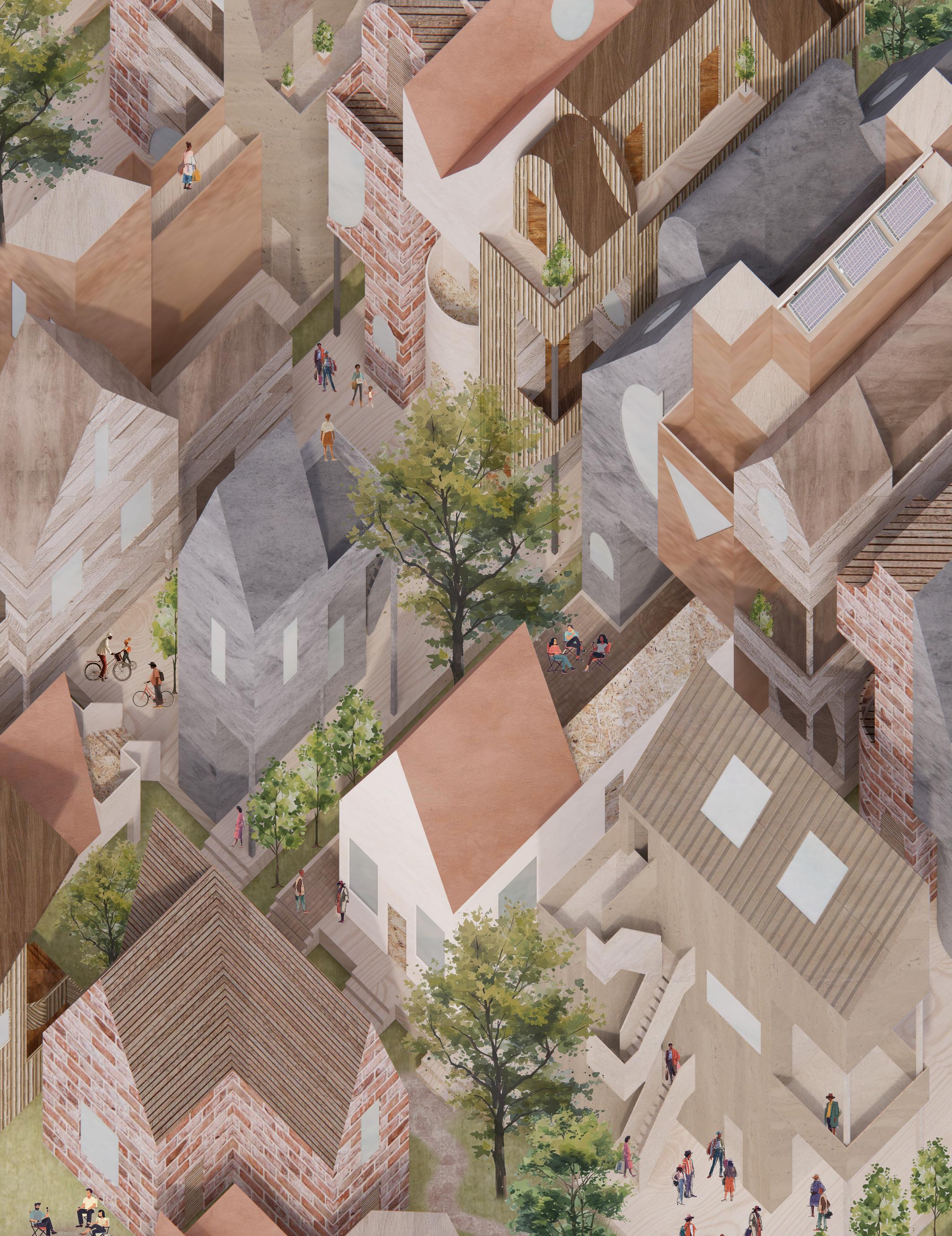 New Zealand has long been a nation of home renovators, where the Kiwi can-do spirit thrives in every DIY project, backyard extension, and self-built home. Embracing this ethos, this proposal introduces affordable, mid-density modular housing that is turn key ready on day one yet designed to evolve over time. Rather than a rigid, mass-produced model, these row houses offer mass customization, empowering homeowners to shape their spaces to fit their changing needs. A dedicated building service pad in each backyard allows for effortless expansion, whether it’s a home office, guest suite, or rental unit, each addition builds both space and equity. More than just housing, this is a social experiment in adaptability and community, where vibrant streetscapes, shared experiences, and collaborative living redefine the modern Kiwi neighborhood.