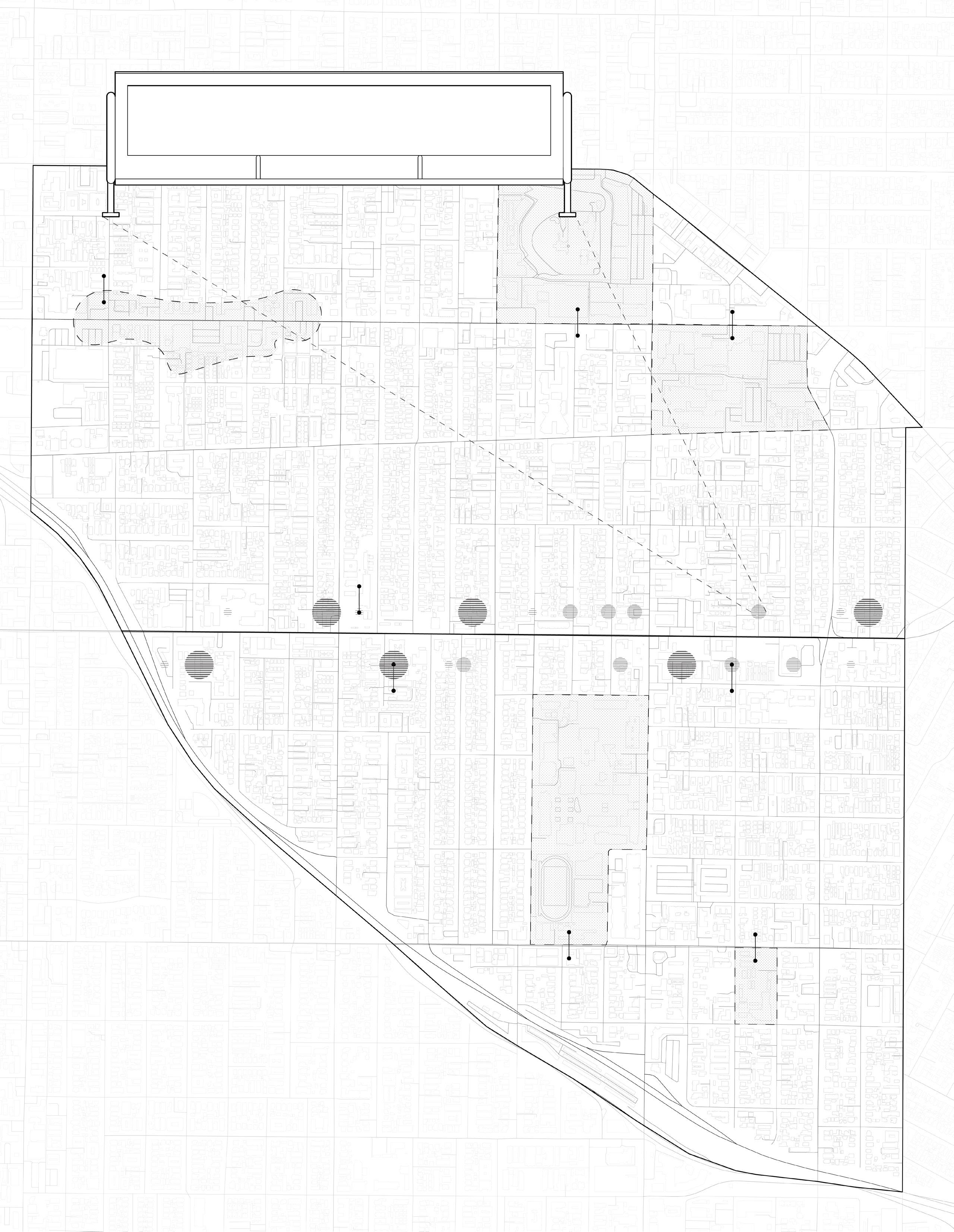 Oakwood is a residential neighborhood located in Venice, CA. Also referred to as Ghost Town and Dogtown, this small neighborhood has deeply rooted gentrification issues. In 2017, a rich business mogul bought the site of a culturally significant and widely used church and began demolition for the construction of a massive mansion. Despite community outrage and public protests, this church was not considered for designation as a historicalcultural monument and proceeded to be torn down. To fulfill this void in the community, this design proposes a larger community center and non-denominational church be constructed across the street from the original site. The central axis is voided out to enable a safe passageway between the street and the park.