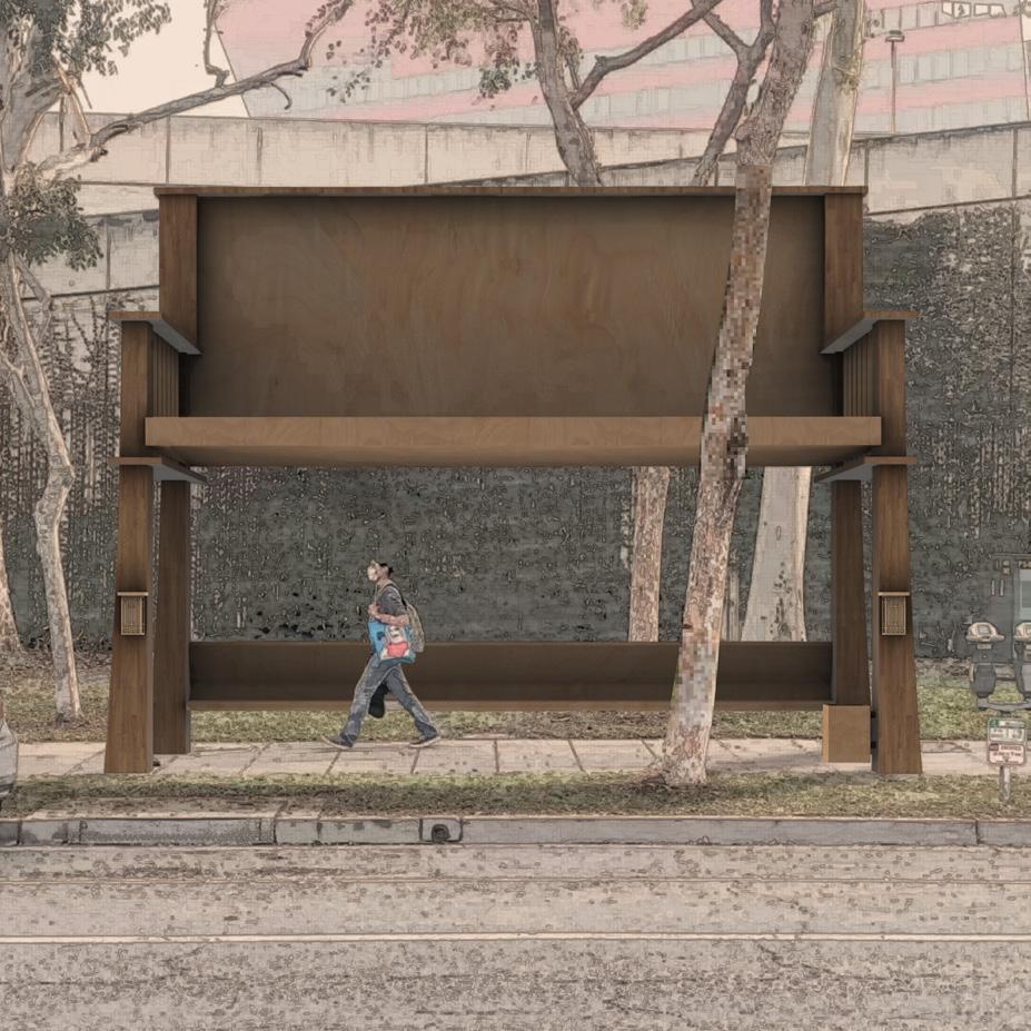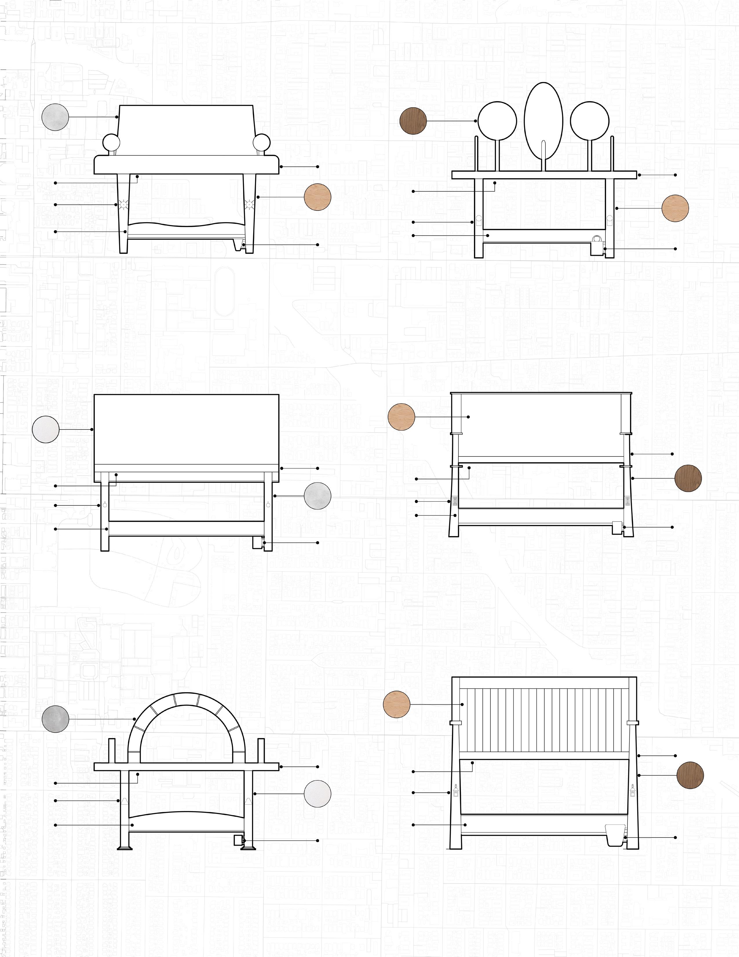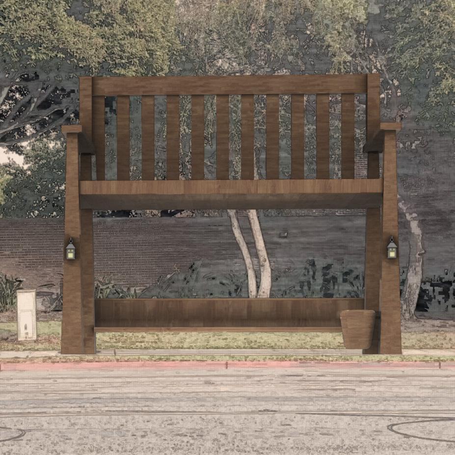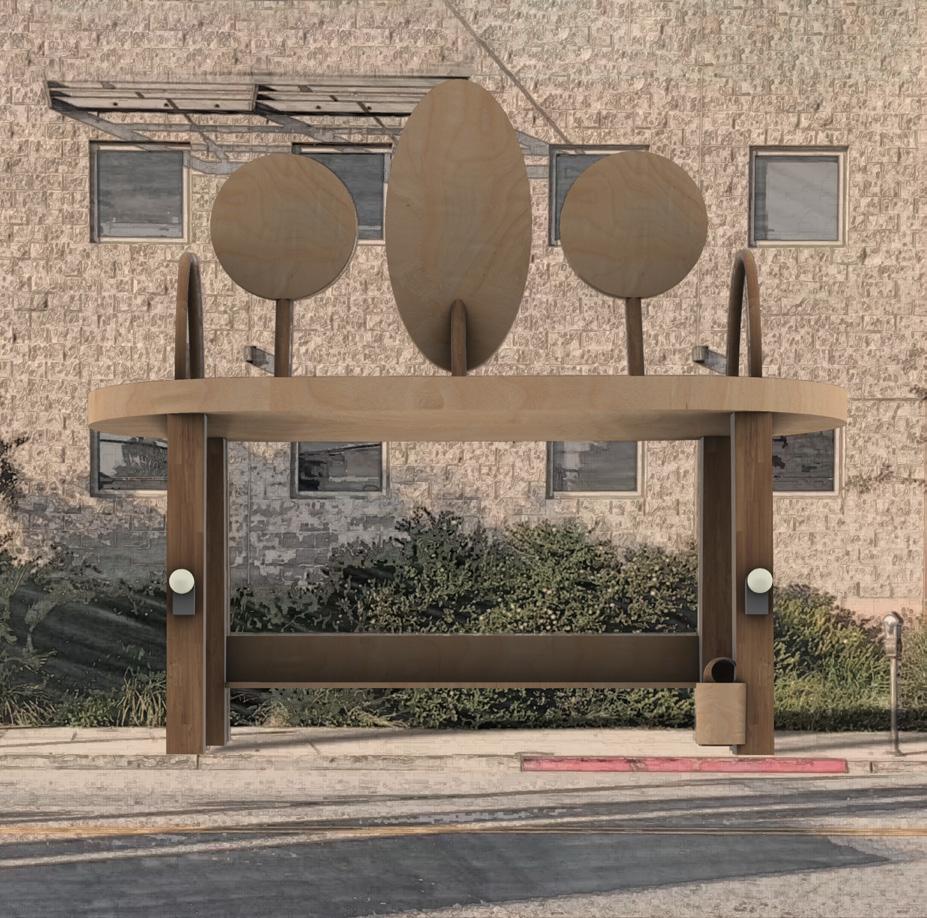 Santa Monica Boulevard is a major thoroughfare in Los Angeles that runs through eight primary neighborhoods of the city. Originally a part of the historic Route 66, this boulevard interweaves each of these eight distinct neighborhoods as a primary vehicular artery. In this artery, public transportation users rely on bus stop benches for respite against the Los Angeles heat and bustling city. These benches are a vital component of the fabric of the city which are often overlooked. Despite being the city with the most public transportation users across Santa Monica Boulevard, West Hollywood has the least amount of bus stop locations offered. Inspired by six architectural typologies found across Santa Monica Boulevard and pulling from the long history of large-scale art pieces across the city, these six bus stop designs are placed in West Hollywood to create an iconography of public transportation which can no longer be overlooked.
