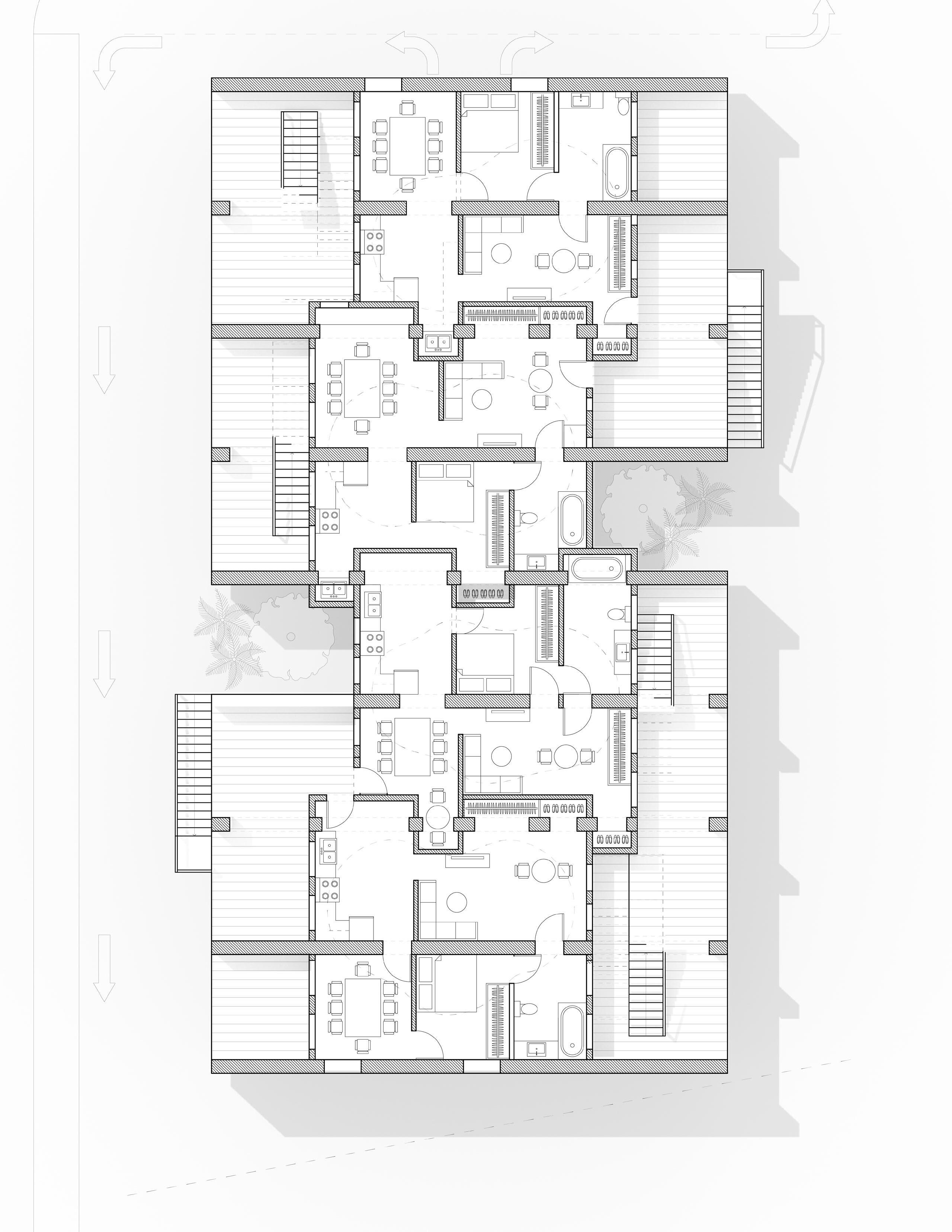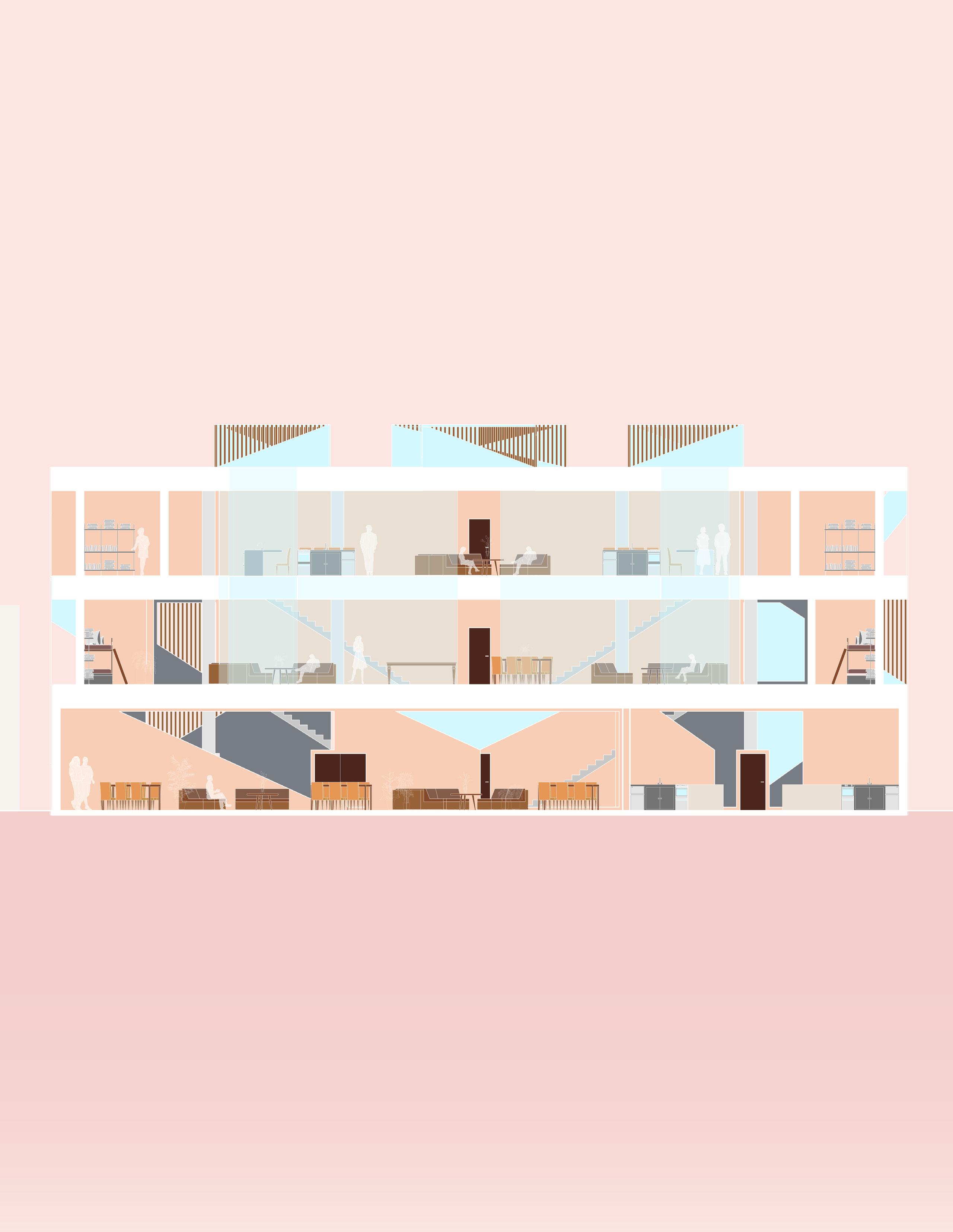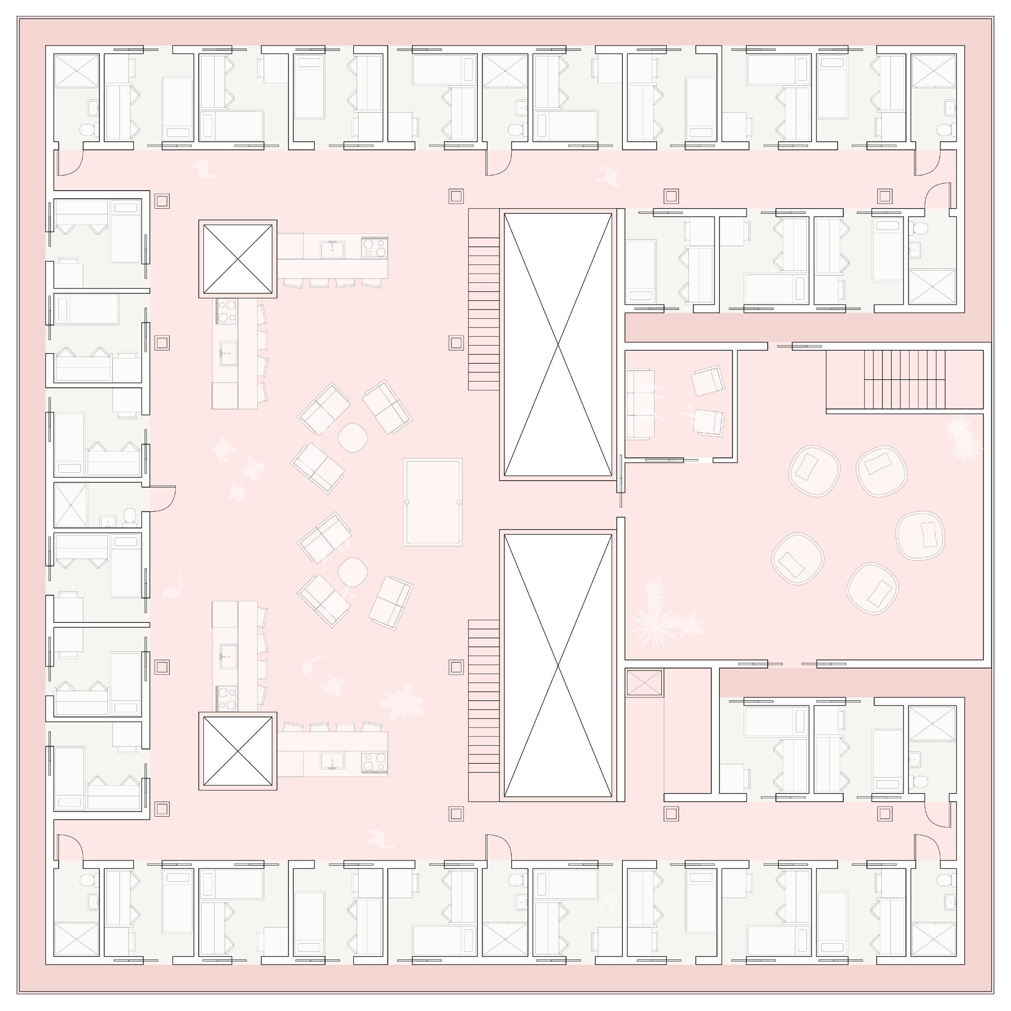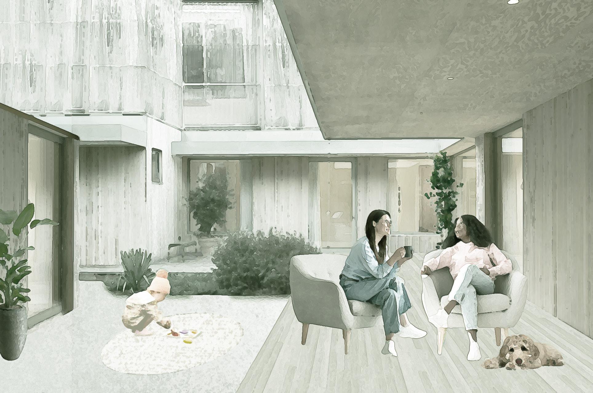 Leimert Park is a vibrant and lively neighborhood located in South Los Angeles. Developed in the 1920s, it was one of the first planned communities in Southern California. Since its initial development, it has become a cultural hub for African Americans and is known for its artistic influences in greater Los Angeles. In recent years, this community has seen an increase in rent and property prices due to gentrification. This has caused an increase in the at-risk youth population, who are now facing circumstances that may lead to a negative impact on their academic and social progress. This design provides a co-living model of housing designed for at-risk youth and their mentors, who were previously at-risk youth individuals. Through this mentorship programming, this population is able to experience a living space that incorporates all the vital resources needed to help propel them into the future, including a therapeutic center, education center, and career center.