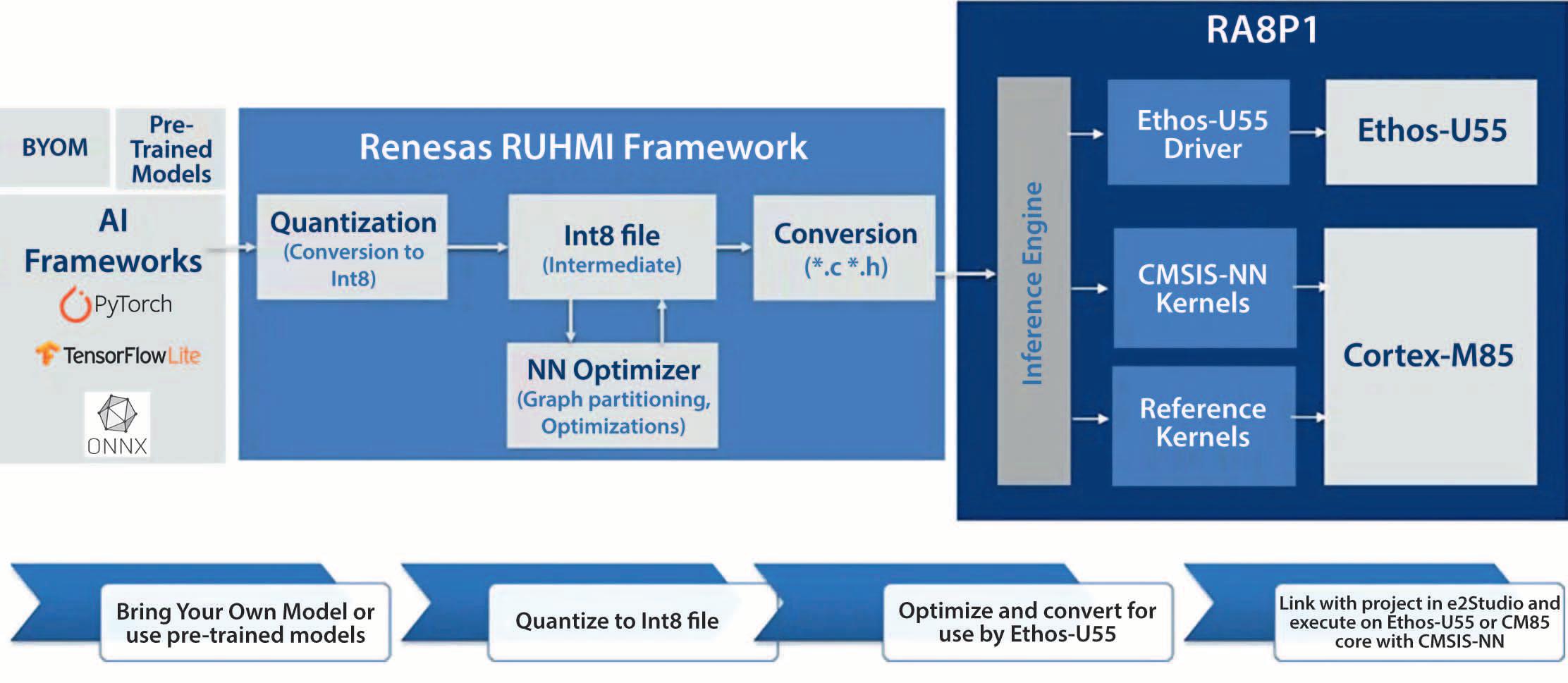 RZ/V2N este compatibil cu formatele standard de modele, precum ONNX și TensorFlow Lite.