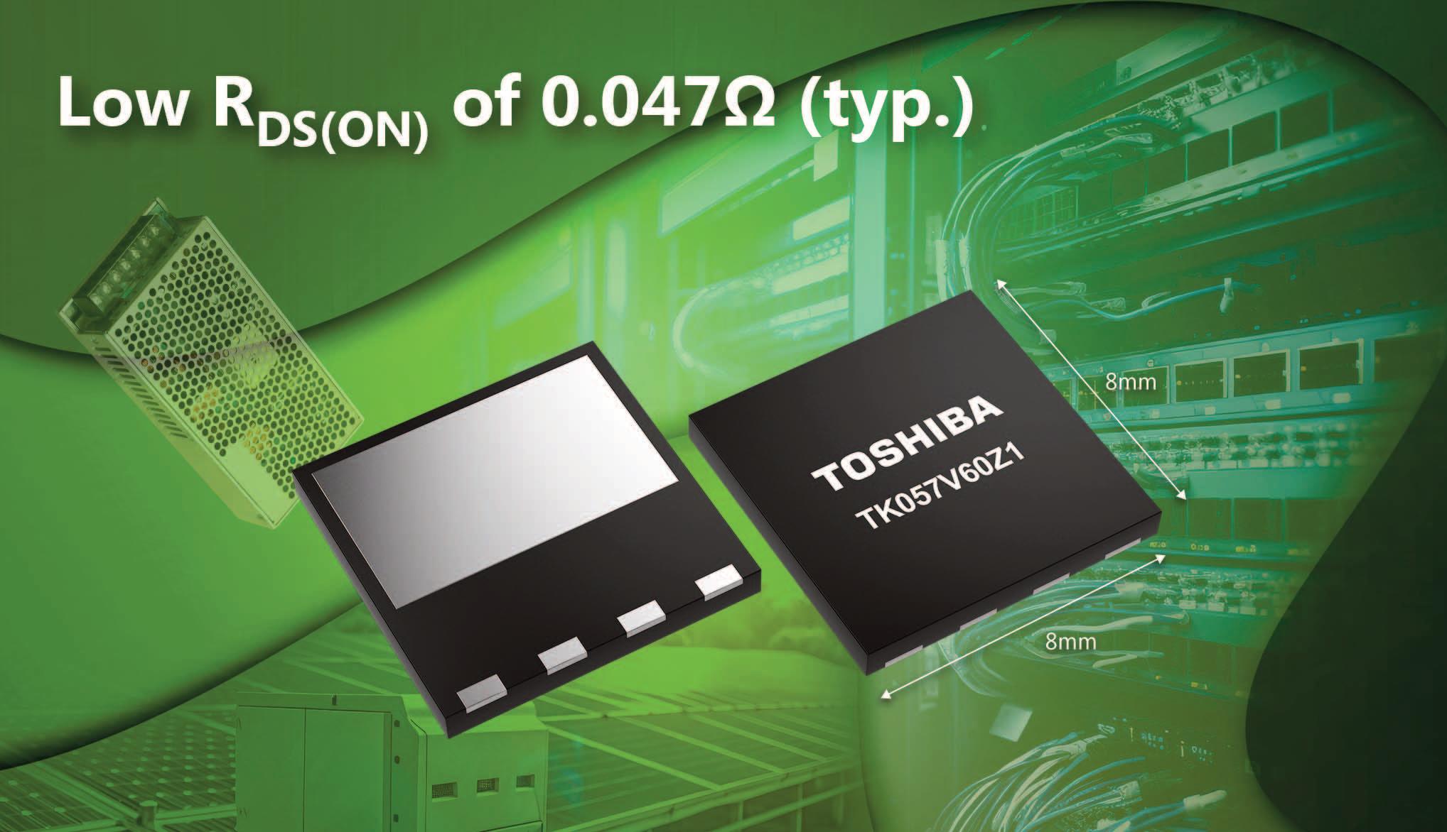 Toshiba launches a 600V N-channel super junction power MOSFET in the DTMOSVI 600V process and housed in a compact DFN8×8 package. The TK057V60Z offers a drain-source voltage (VDSS) of 600V with a drain current (ID) capability up to 40A. The typical drain-source on-resistance (RDS(ON)) is as low as 0.047Ω (0.057Ω max.), and the typical gate drain charge (Qgd) can be as low as 15nC. The high-efficiency