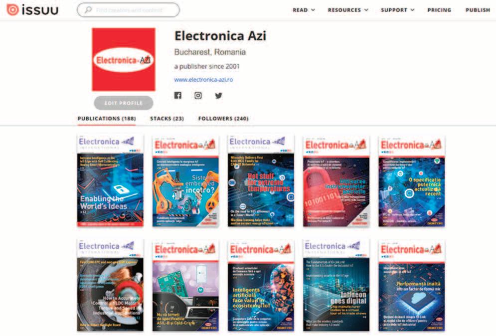 Revista “Electronica Azi” în format digital este disponibilă gratuit accesând: https://.electronica-azi.ro În acest format pot fi vizualizate toate paginile revistei şi descărcate în format PDF.