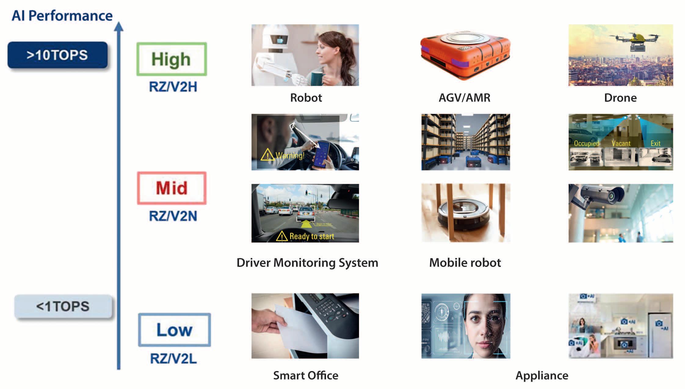 Figura 2 Poziționat ca o soluție midrange în seria RZ/V, RZ/V2N permite aplicații precum roboți mobili pentru uz casnic și sisteme de monitorizare a șoferilor.