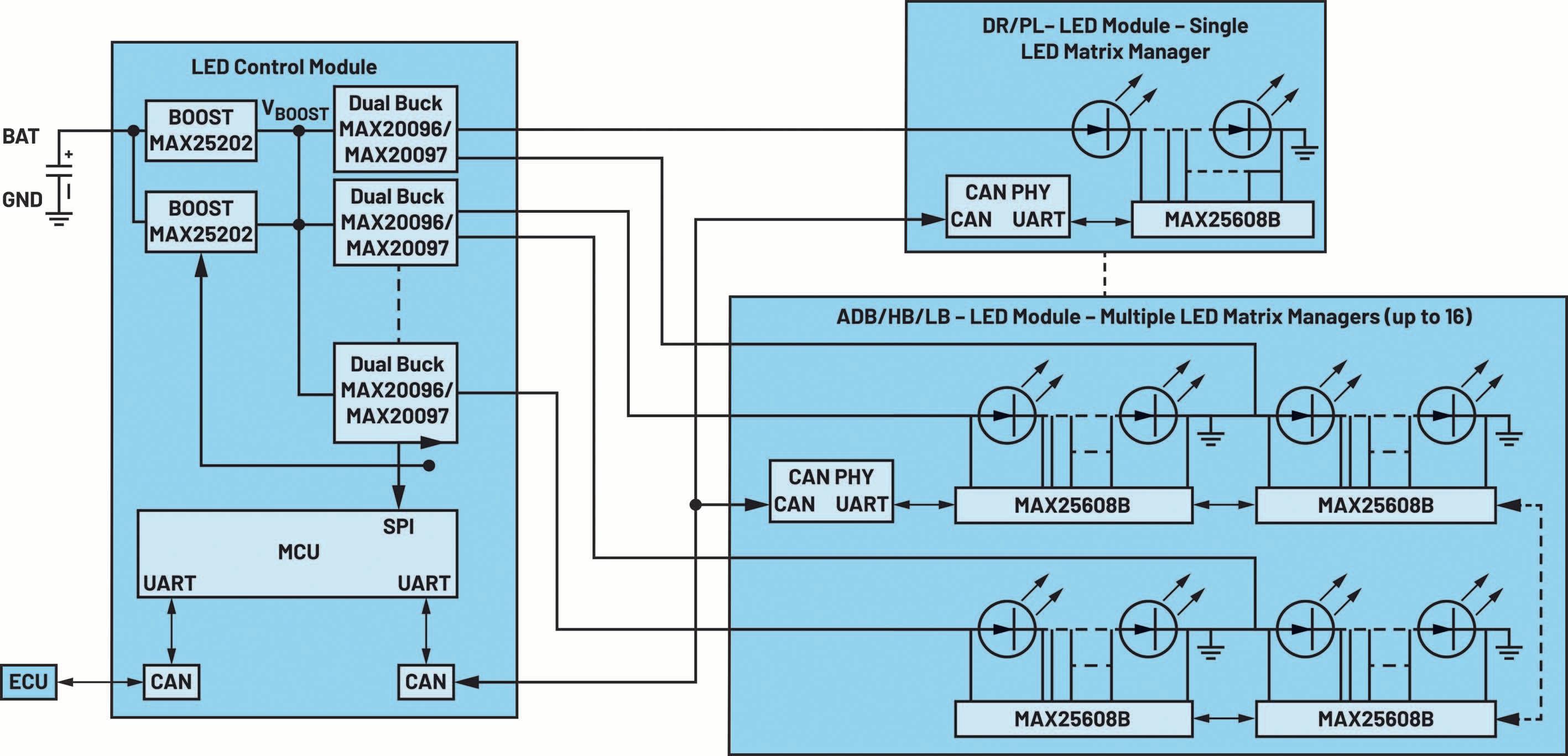Iar în domeniul auto, Analog Devices aduce inteligența și precizia electronică în controlul iluminatului frontal, transformând farurile în sisteme inteligente capabile să răspundă în timp real la condițiile de trafic.