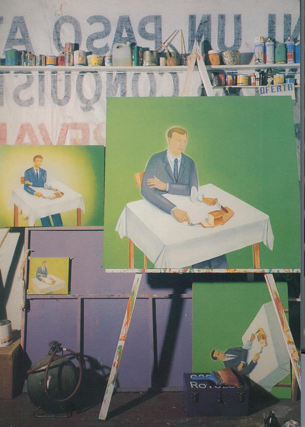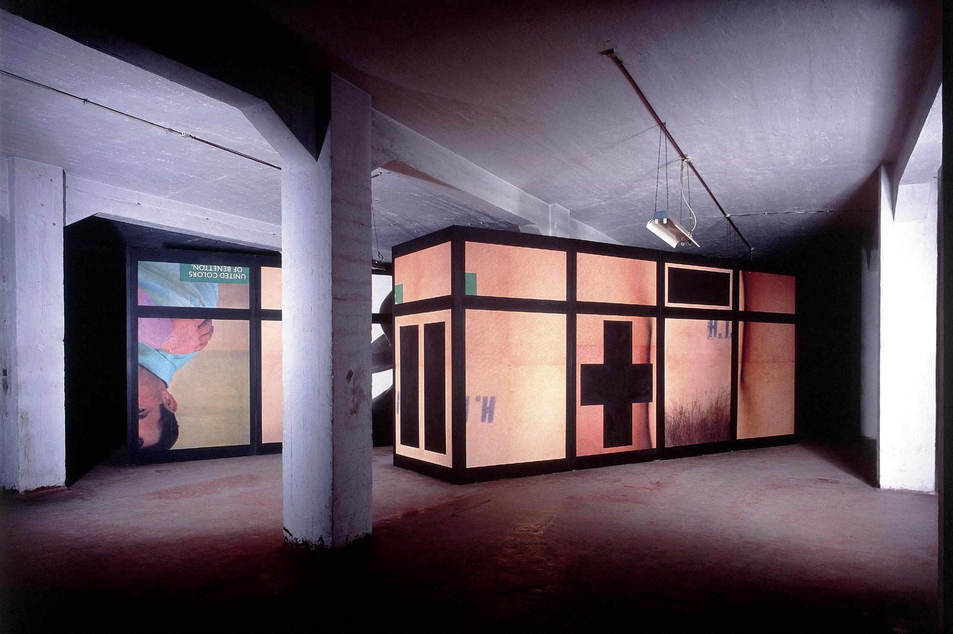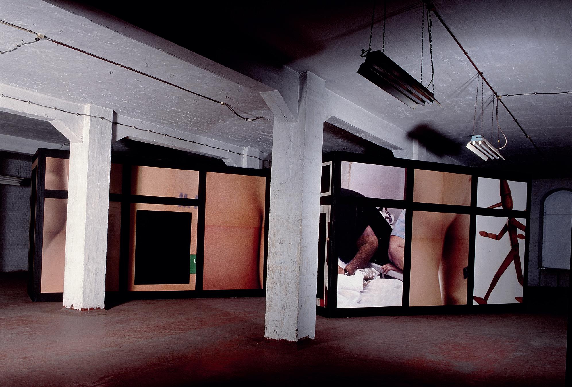 Sans titre, 1984. Huile sur bâche. Michel Boulanger, Monika Droste, Michel François, Ann Veronika Janssens, Babis Kandilaptis. A cura di Espace 251 Nord, 1986. Sala Uno, Roma.