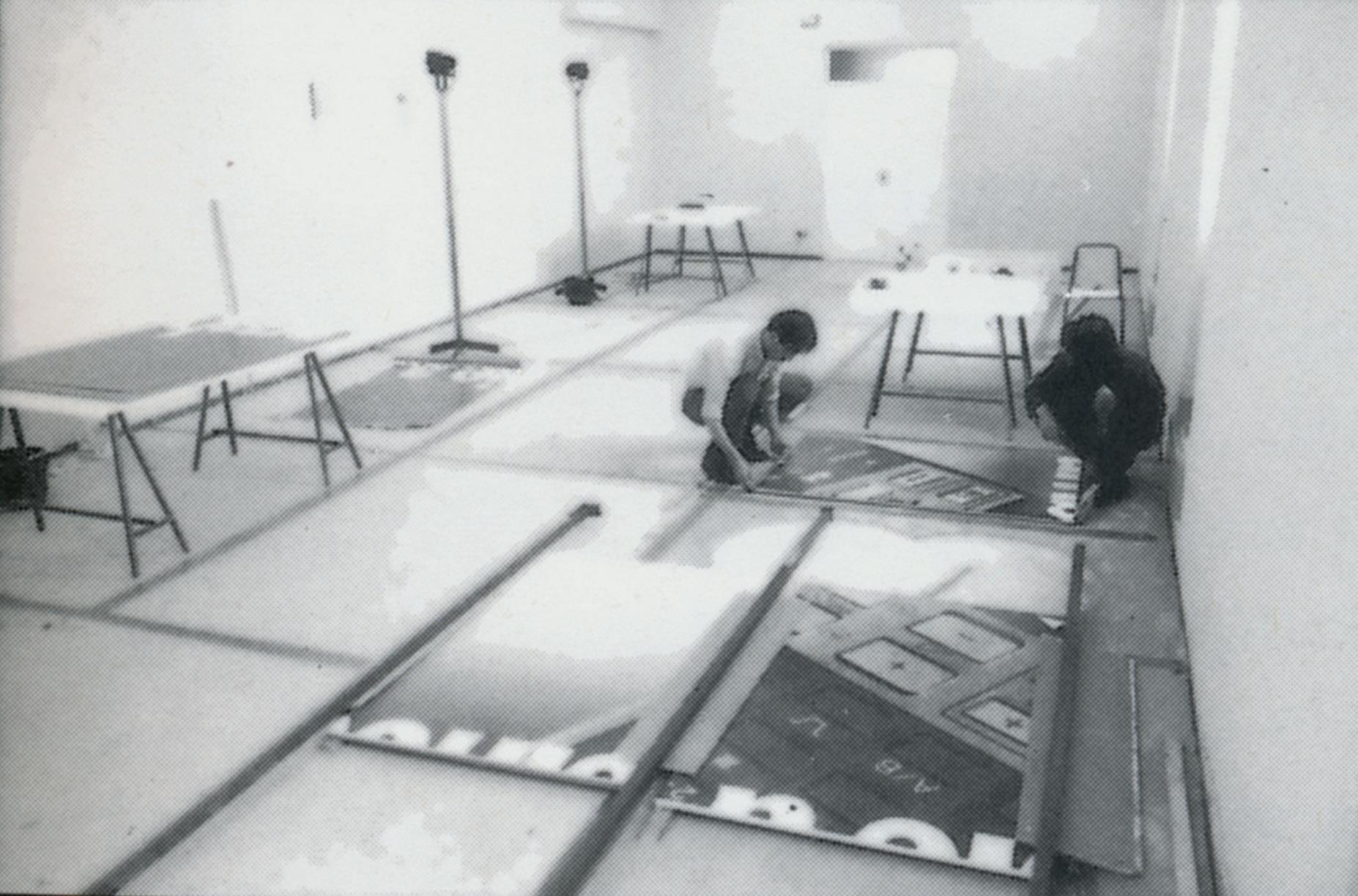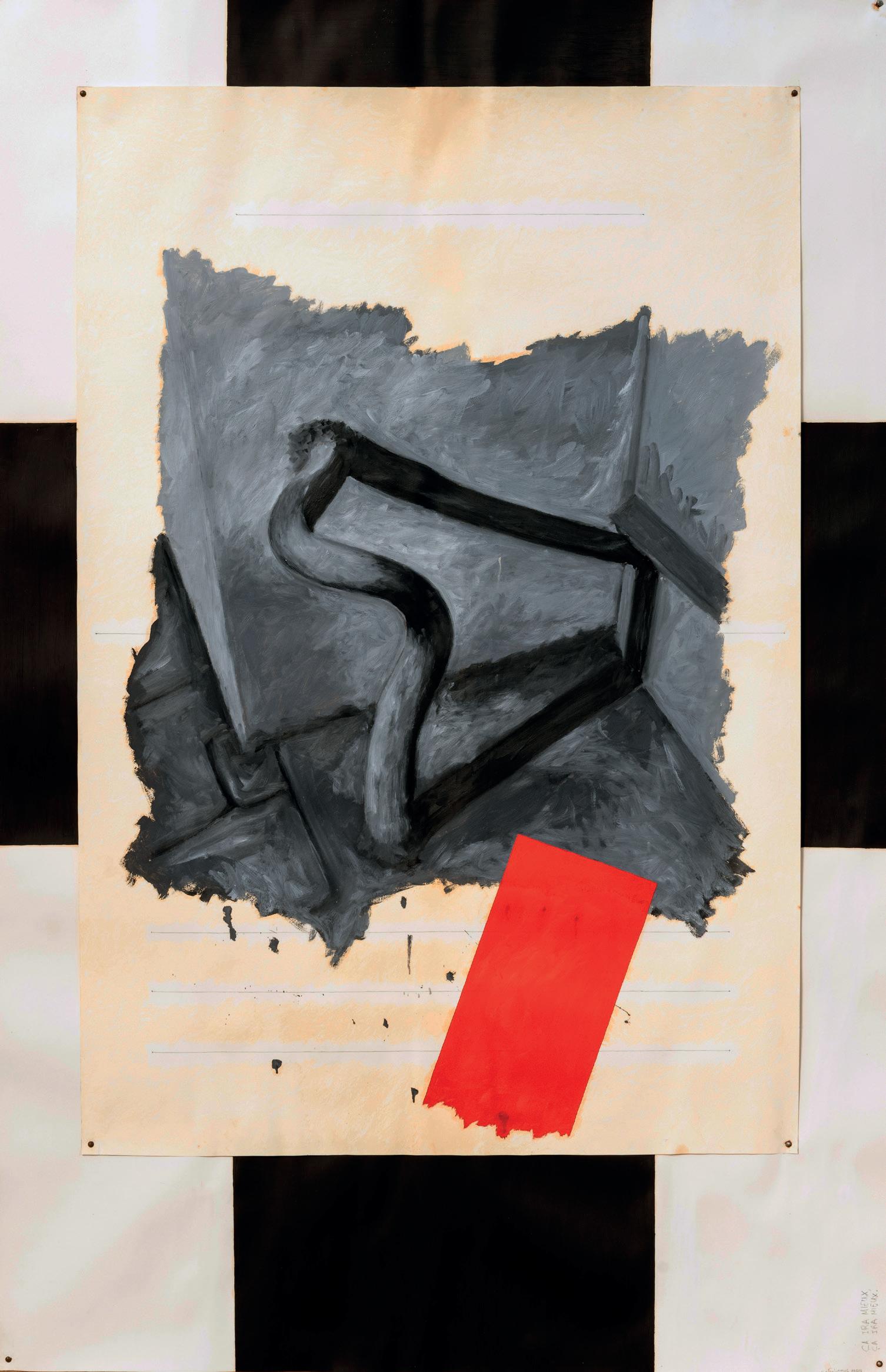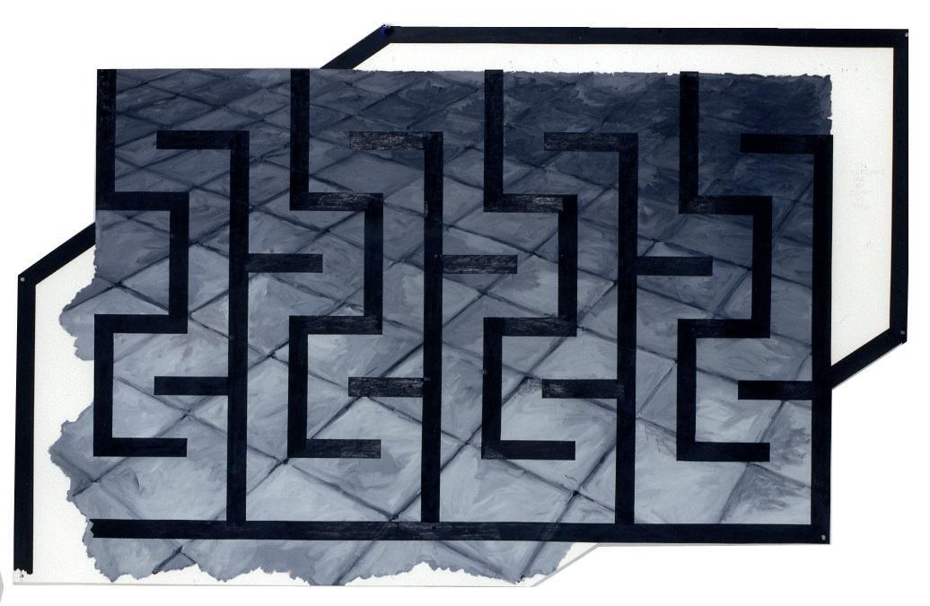 Sans titre, 1988. Acrylique et encre de Chine sur calque. Atelier de production : Jan Carlier – Babis Kandilaptis, 1988. Espace 251 Nord, Liège.