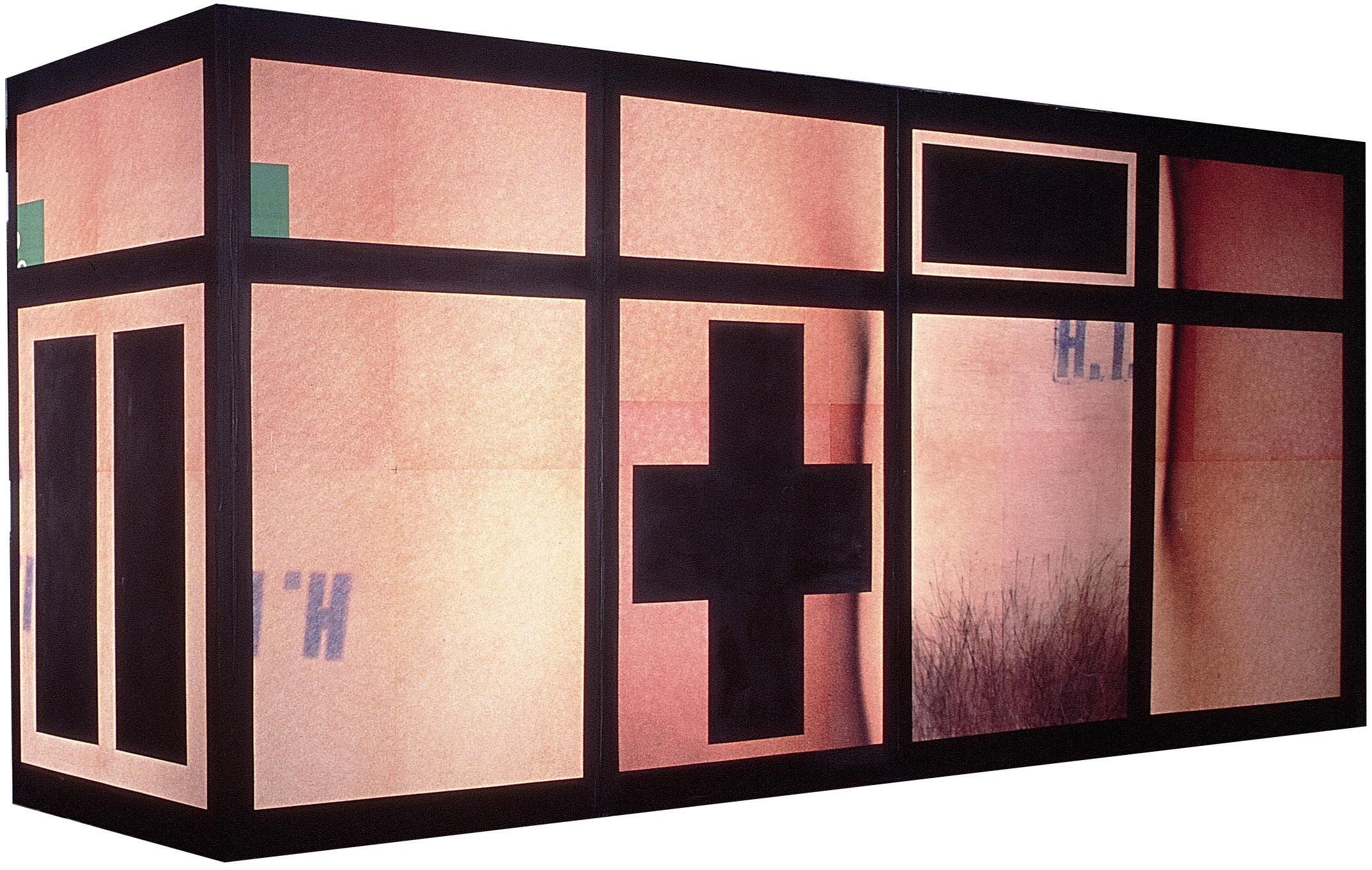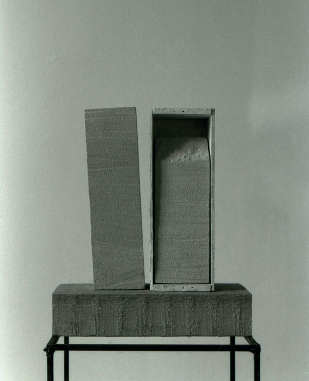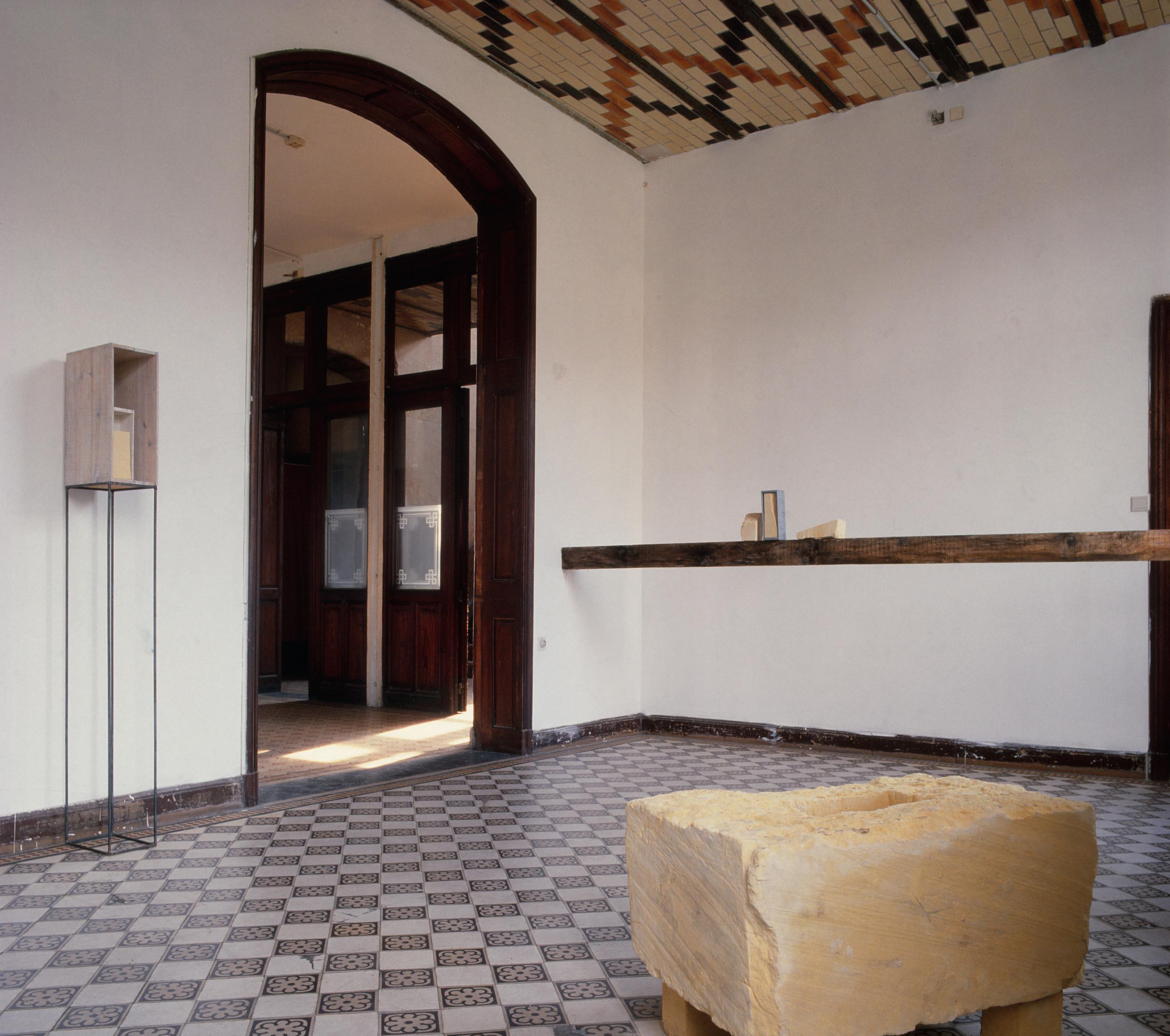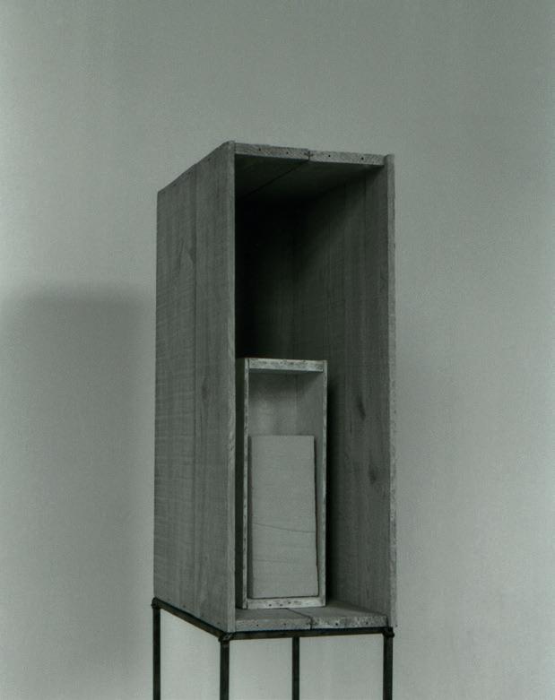 Sans titre, 1987-1988. Boîte en bois, bois, pierre de Marne et métal. Atelier de production : Jan Carlier – Babis Kandilaptis, 1988. Espace 251 Nord, Liège.
