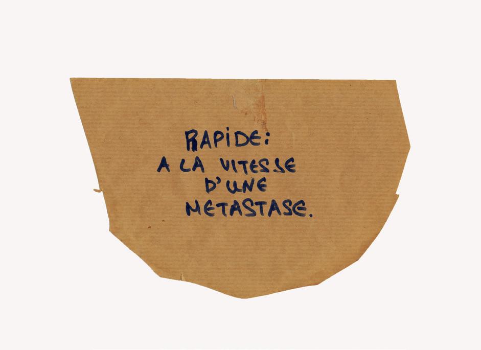 Ainsi on crache comme on nous l’a appris. Ainsi on crache sur vos nomenclatures, vos fadaises, vos foutaisons, vos manières affables, vos mastications, vos mots retenus, vos mots acerbes. L’extase est dans le crachat cathartique et flotte comme une bannière. Démocratie ! Démocratie ! Démocratique pensée ! Une catastrophe est nécessaire, bouleversement microcosmique à l’échelle planétaire. Comme on se débarrasse d’un phlegmon pour avoir la tête limpide et la voix claire.