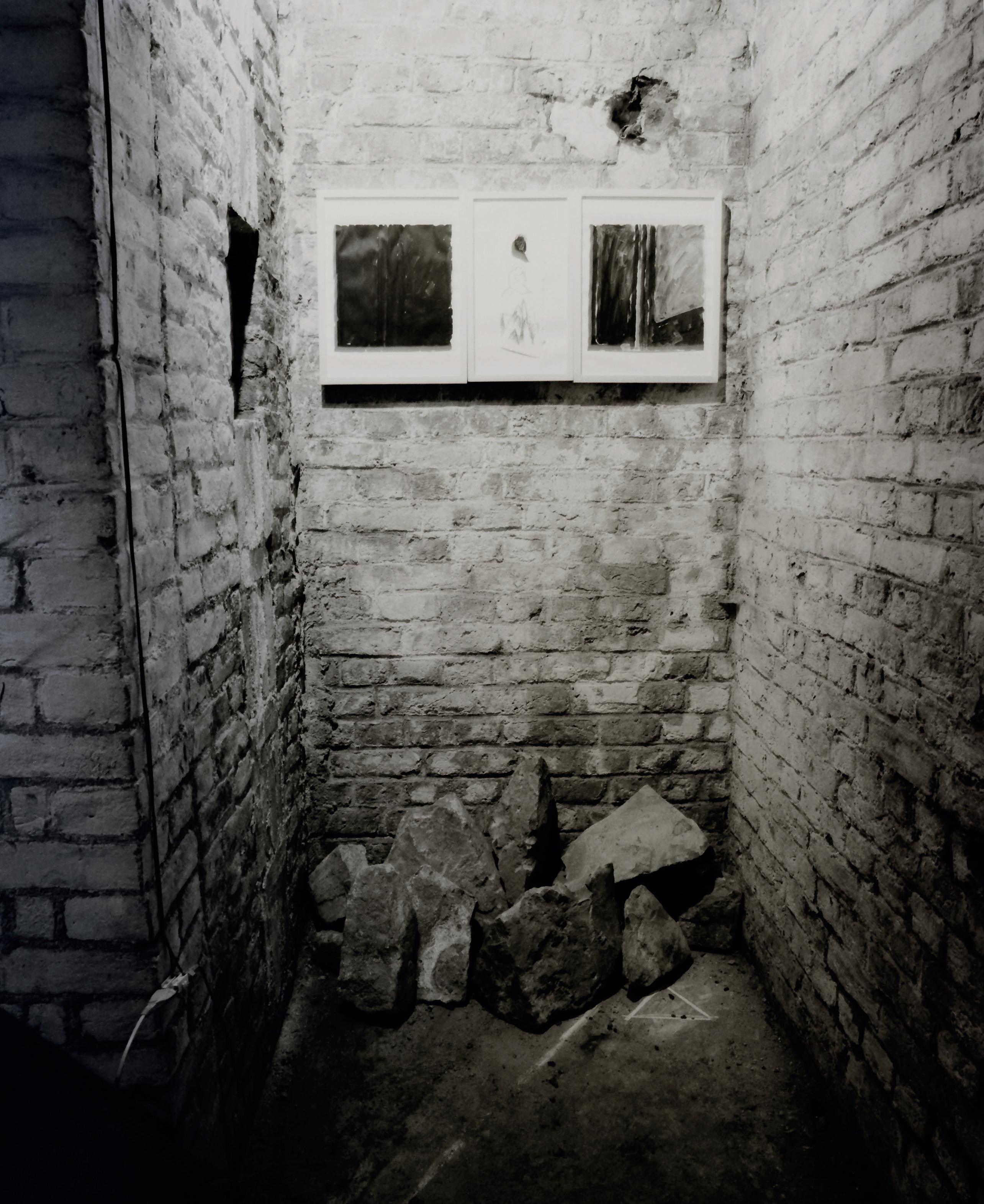 Mnêmê, 1987. Pierres, acrylique, encre de Chine, crayon sur papier. Arte in situazione – Belgica – Situazione del l’arte, 1987. Galerie Oddi Baglioni, Rome.