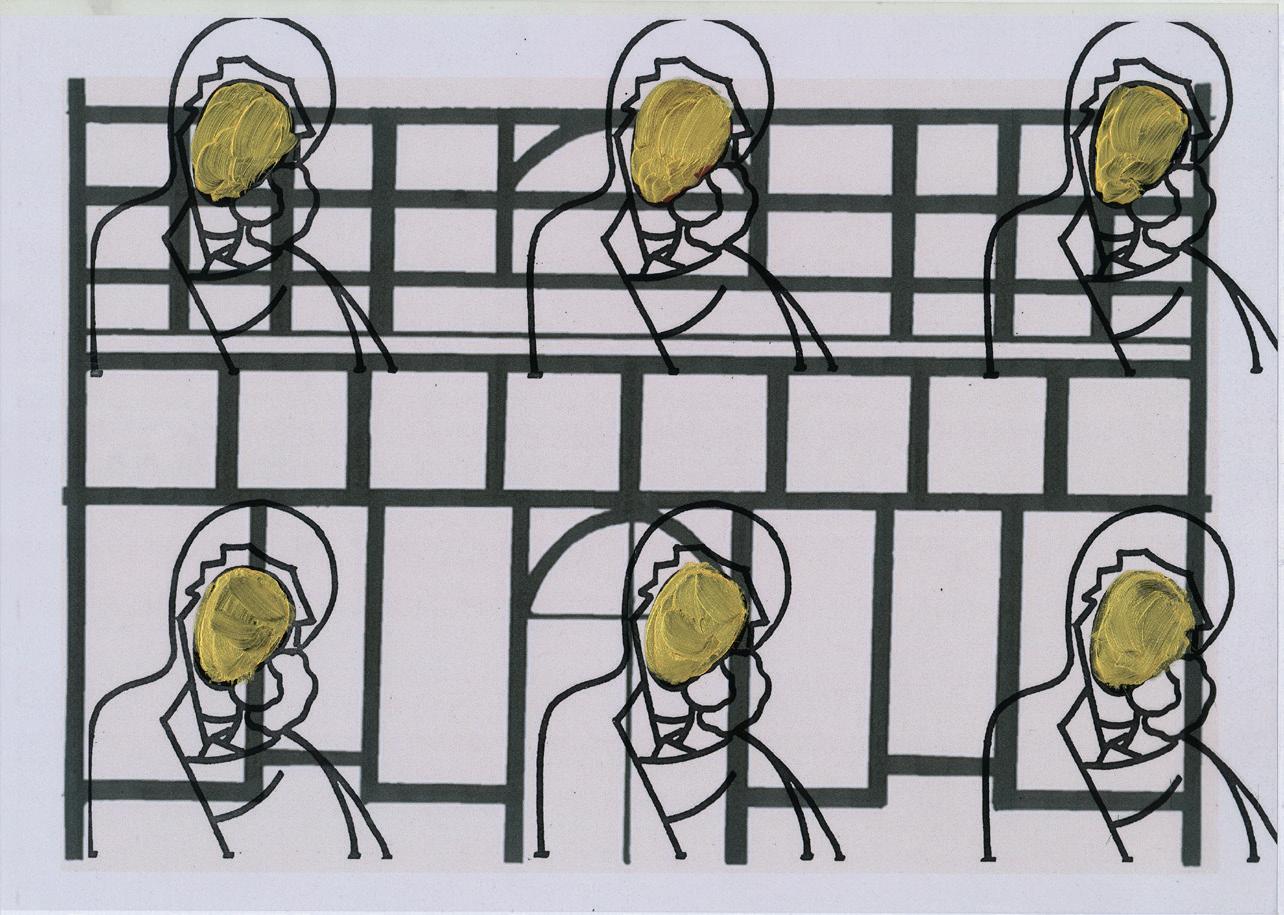 Iconostase publique (détails), 2006. Impression couleur sur autocollants, sur verre.
