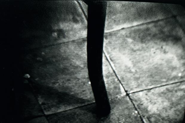 Acrylique, encre de Chine et pastel sur béton. Pieds 1981-1982. Vidéo N/B.