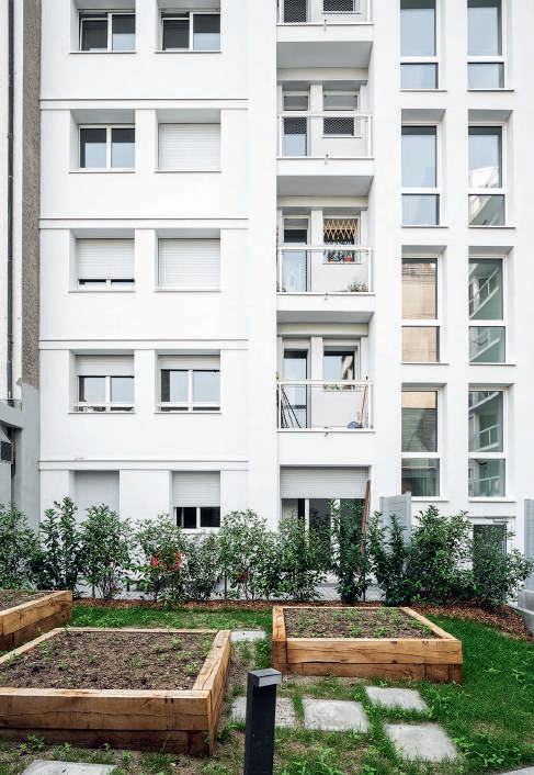↖ les bacs potagers favorisant les contacts entre locataires.