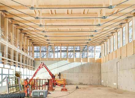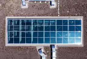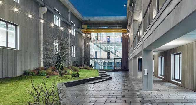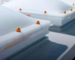 des charges plus importantes. Cette difficulté supplémentaire est surmontée par le choix d’une structure en verre PR60 qui se caractérise par une ossature de toit à deux versants divisés en 12 x 4 panneaux vitrés. Chacun de ces panneaux de 2 x 2 mètres de dimension est encastré dans un cadre préfabriqué et assemblé sur place. Pour soutenir l’ensemble d’un poids de 17 tonnes, une traverse de faîtage de 24 mètres de long est ajoutée, venant parfaitement s’aligner sur la poutre porteuse en acier. Cette précision, rendue possible par l’installation d’étais réglables, permet ainsi de respecter les dimensions du bâti. Pour compléter ce toit de verre, l’entreprise réalise quatre installations d’extraction de fumée et de chaleur surplombant les cages d’escaliers, ainsi que des coupoles Multiperform dans les vestiaires du personnel. Cupolux a réalisé avec brio une ouverture lumineuse monumentale de l’espace qui donne tout son caractère au projet. cupolux.ch