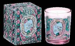 Paris en fleur, une bougie aux fragrances de rose éditée en édition limitée par la maison Dyptique en hommage à la Ville lumière. diptyqueparis.com