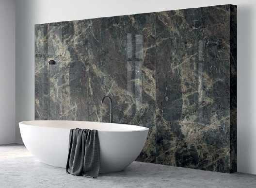 Les panneaux de revêtement en pierre fritée Amazonico évoquent les forêts tropicales humides luxuriantes d’Amérique du Sud. neolith.com