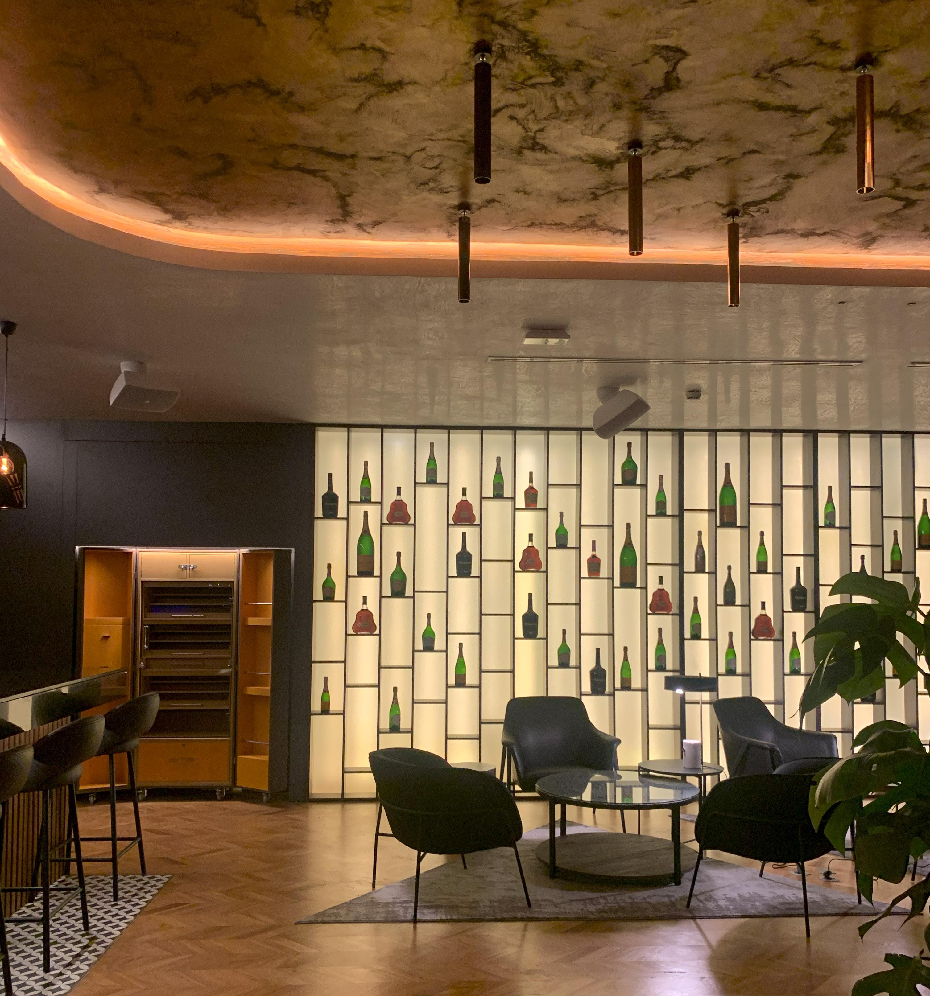 Design and project management for a very prestigious and selective cigar lounge, located on the top of one of the luxurious commercial center of Abidjan, with a magnific view on the bay of Cocody.