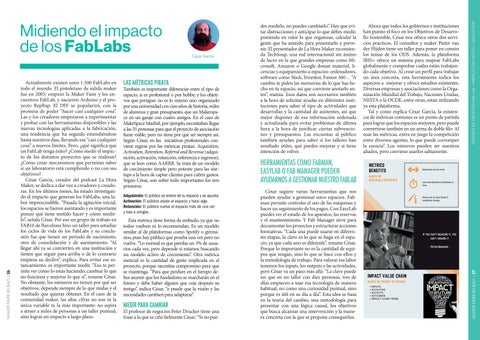 JETCLAY: UNA RED DE IMPRESO RAS 3D REPLICABLES P.4 MEET THE MAKERS: MAKER NAVAL P.18 BETIANA PAVÓN: DE LA PASARELA AL MUSEO P. 28 MEET THE MAKERS: ASIER CORDERO P.44 ADELE ORCAJADA: MODA SOSTENIBLE Y BIOMATERIALES P.10 GIANLUCA PUGLIESE: ROBOTS RECICLADOS PARA FABRICACIÓN DIGITAL P.14 MEET THE MAKERS: NATURAL PATTERNS P.17 FRANK BLOEM: OPEN AROMA LAB P.19 DELIA MILLÁN: UN FAB LAB SOBRE RUEDAS P. 24 CÉSAR GARCÍA: EL IMPACTO DE LOS FAB LABS P.26 JAVIER FERNÁNDEZ: CINE E INTELIGENCIA ARTIFICIAL P. 30 MEET THE MAKERS: BAROCK JEWELRY P. 34 MEET THE MAKERS: ARTENCODERS P. 35 MEET THE MAKERS: MRS.& MR. GARCÍA P.36 MEET THE MAKERS: ADRIANINO P.37 VARVARA GULJAJEVA Y MAR CANET: NFT Y CRIPTOARTE ÉTICO P.38 MEET THE MAKERS: PROYECTO TWIN P. 45 THOMAS AMBERG: TECNOLOGÍA PUNTA DE GAMA BAJA P.42 CALIGRAFÍAS LUMINOSAS P.46 DRAWDIO: DIBUJANDO MÚSICA P.47 LA FÁBRICA DE GALLETAS P. 48