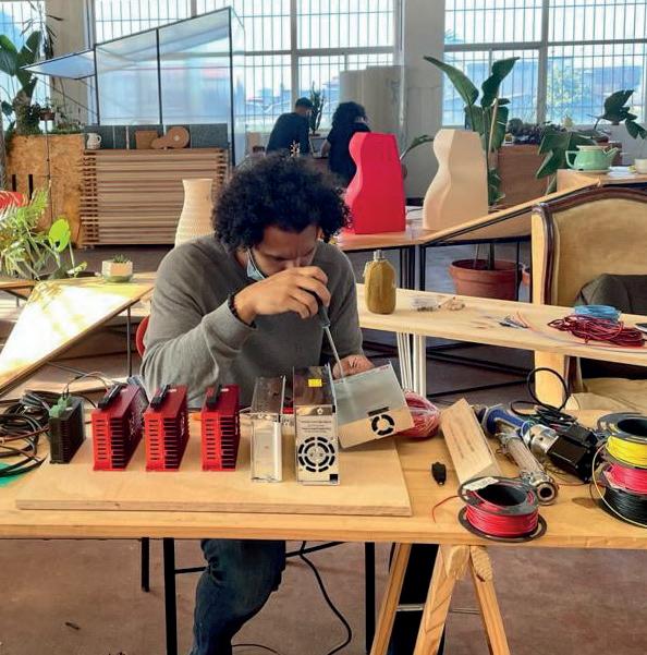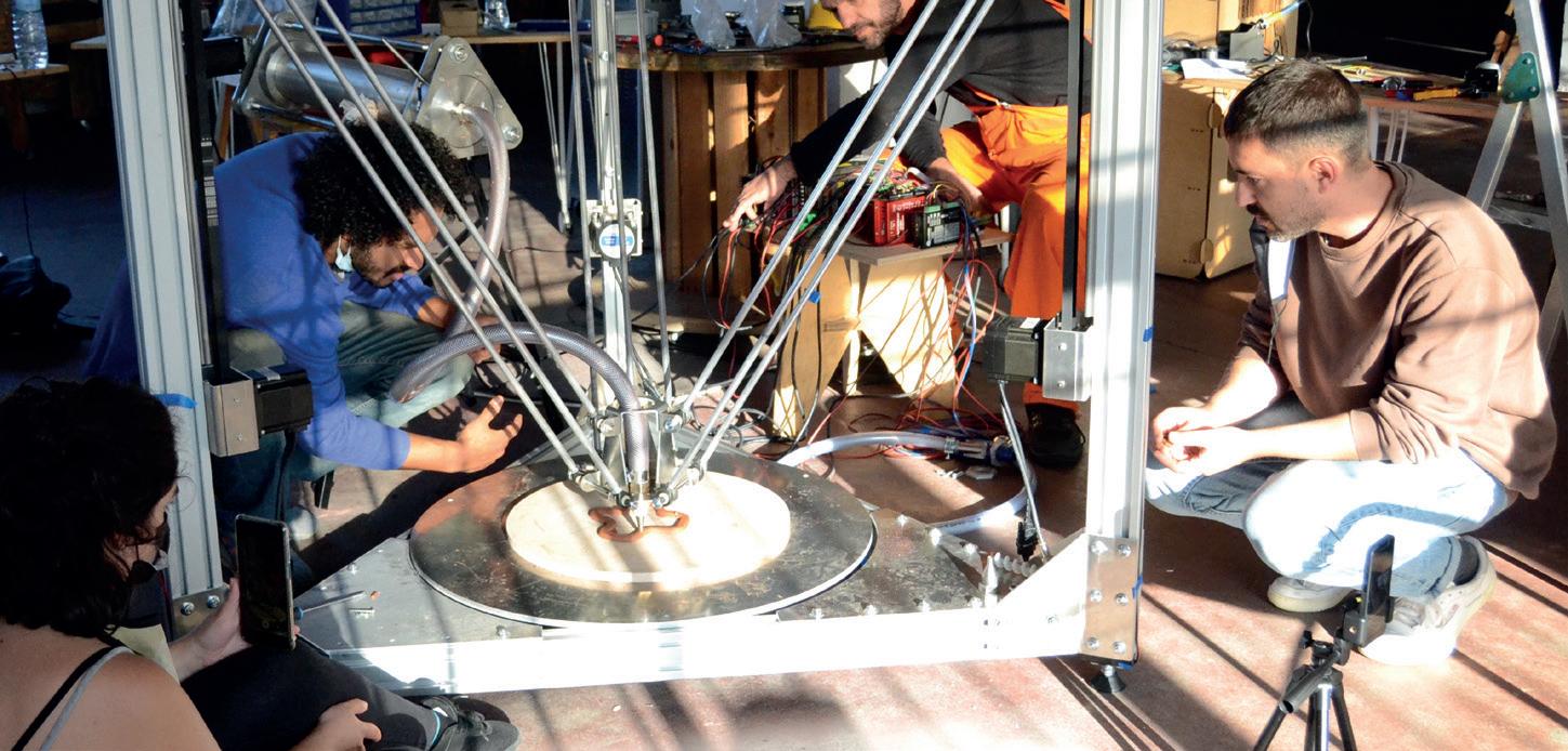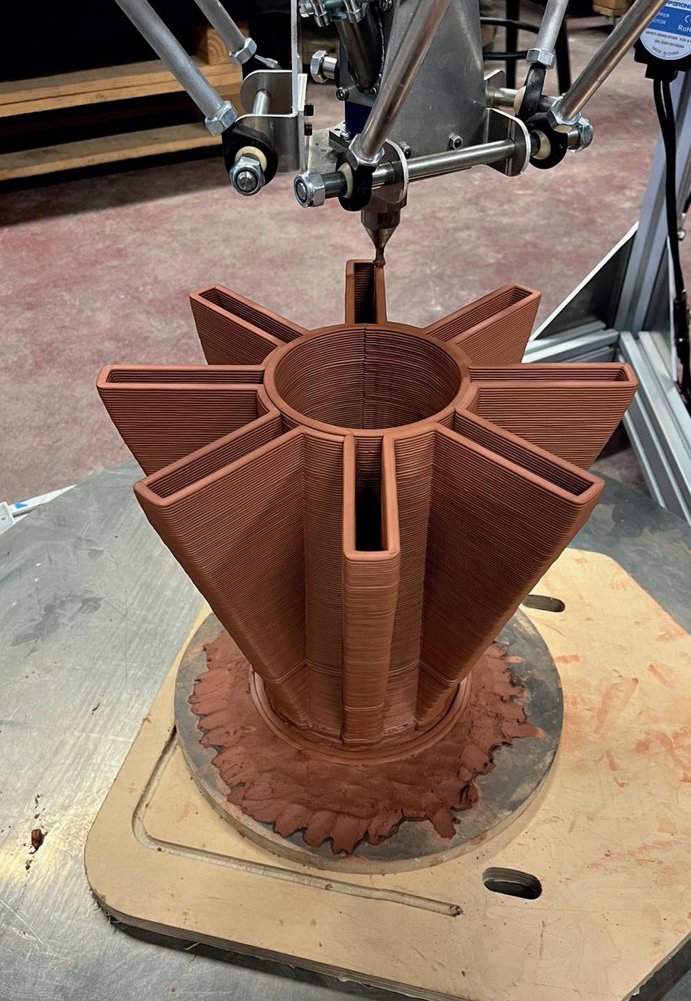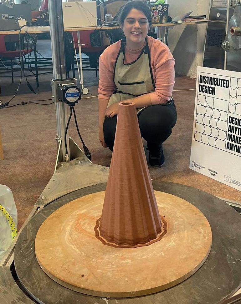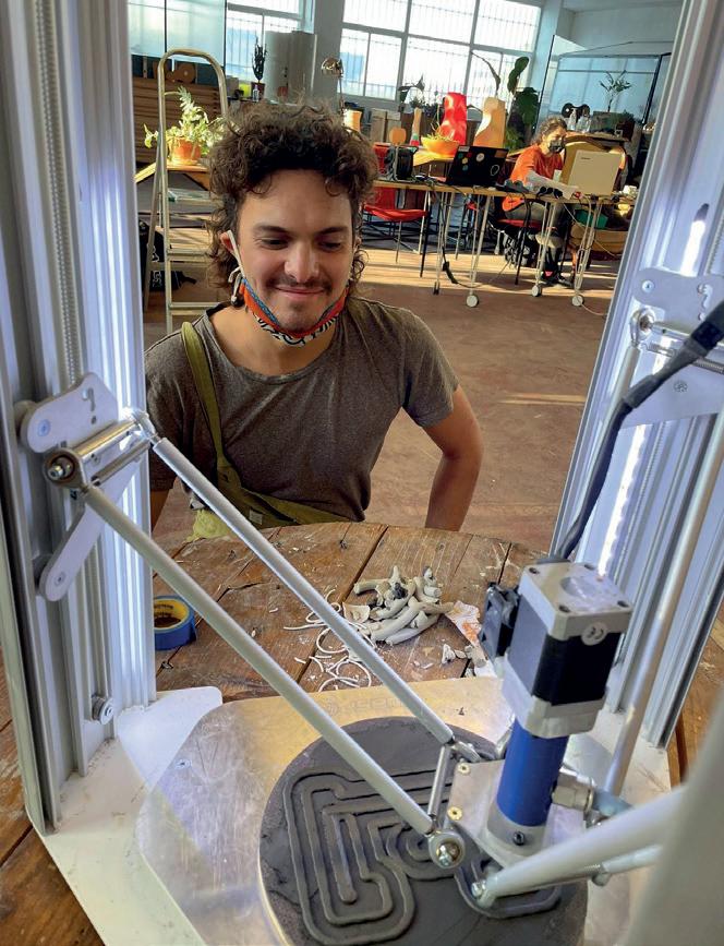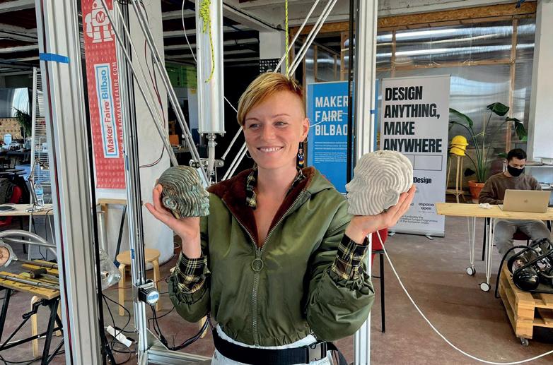 Euka Estudio es un estudio de Biodiseño y sostenibilidad de México. Tony Gutiérrez, de nacionalidad hispano-mexicana, vino desde San Luis Potosí, México, para aprender a montar su propia impresora. Él define Euka como “un proyecto que busca impulsar el biodiseño como herramienta contra el cambio climático”. Apuesta por materiales naturales como la piedra, la tierra y las plantas, unido a la impresión 3D. Para todo ello emplea psicrometría, diseño bioclimático, biodiseño y biofabricación. Fruto de su trabajo ha surgido un humidificador de aire que funciona sin electricidad. Antes lo tallaba sobre piedra porosa, una tarea dura y compleja, pero aquí pudo hacerlo con arcilla mediante impresión 3D para mejorar su funcionamiento y abaratar costes. www.euka.life/estudio “Me gusta trabajar con las manos y lograr mediante el arte que el universo dé vida a los sueños”, afirma Sara Stenlund, escultora de Viken, Suecia. Formada en la Academia de Arte de Florencia, su obra combina arcilla y bronce con impresión 3D y refleja la exploración del misticismo y la espiritualidad. En su obra Vibro deritiendo escaneó una pieza anterior para imprimirla en arcilla y explorar cómo todas las personas somos frecuencia. Aunque sus investigaciones artísticas la llevan a viajar por todo el mundo, cuenta con un taller en su ciudad natal, Gallery Viken, donde realiza exhibiciones anuales de su trabajo. www.sarastenlund.com