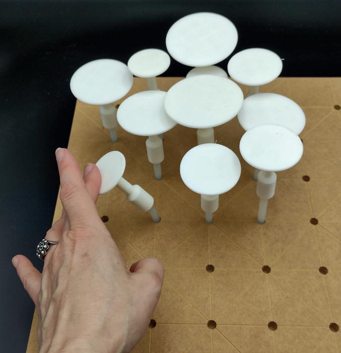 Por ese motivo, Yolanda ha ido probando otros posibles moldes, como filamento flexible o PLA a pequeña escala. También recurrió a formas de la naturaleza como setas. La confortabilidad es otra de sus metas, ya que las reservas habituales son demasiado rígidas, lo que dificulta el trabajo. La impresión 3D le permite usar materiales más flexibles, pero eso conlleva otros problemas que poco a poco ha ido solventando. Por ejemplo, en las piezas ovoides incluyó una pequeña base para que el material no se cayera. Paso a paso, Yolanda ha ido superando cada obstáculo con el que se topaba y ha conseguido justo lo que se proponía: usar reservas más flexibles manteniendo el patrón. www.sedaencolor.es