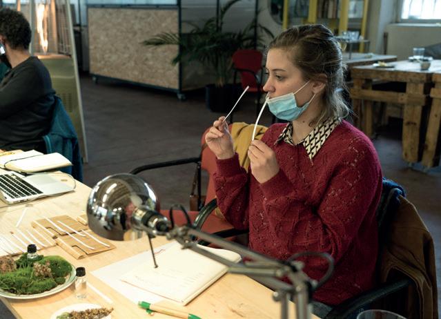 Primero estuvo en Perú, donde trabajó directamente con materiales locales como lana de oveja y alpaca. Eso le permitió conectar con la identidad de diversas comunidades y minorías, así como conocer las posibilidades que ofrecían otro tipo de textiles. Siguiendo este nuevo camino llegó a Ecuador, donde empleó semillas para proyectos de comercio justo. Adele estaba explorando nuevos terrenos y avanzando en su propósito, pero le parecía una réplica ligeramente mejor del sistema que ya conocía, así que la misma pregunta ambiciosa le seguía atormentando: ¿Cómo podía cambiar la industria desde cero? BIBLIOTECAS COLABORATIVAS DE BIOMATERIALES En 2013 realizó el máster de Imaginación Aplicada en Central Saint Martins de Londres y eso le abrió la mente, al permitirle romper las normas. Ahí empezó a investigar los materiales como obras de arte, no como un simple producto que se transforma en otro al final del proceso. Y llegó un punto de inflexión cuando descubrió las materiotecas, bibliotecas de materiales donde la comunidad colabora, y le permitió coleccionar ideas para elaborar la suya propia. Precisamente la ciudad donde se encontraba es una de las capitales en ese campo junto a Amsterdam y, en menor medida, Nueva York. Ahí es donde más se estaba innovando en ese sentido gracias a diseñadores que aplican técnicas innovadoras y sostenibles. Ahora, de vuelta en Bilbao, está trasladando todo su conocimiento y experiencia al alumnado del Basque BioDesign Center.
