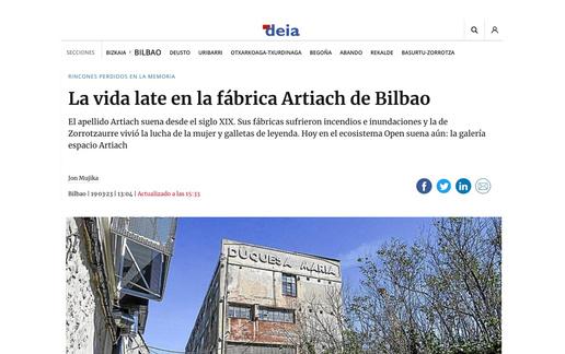 Deia egunkariak Artiach galletafabrika zaharraren sormen eta kultur ekosistemaren berri ematen du.