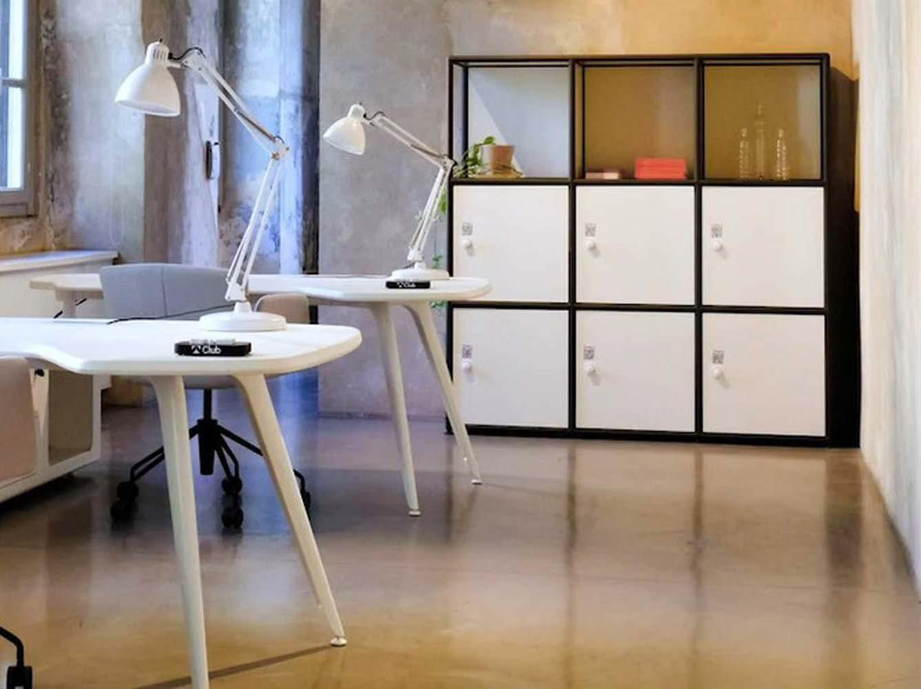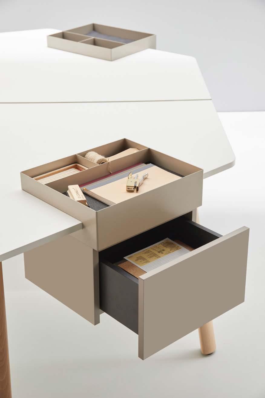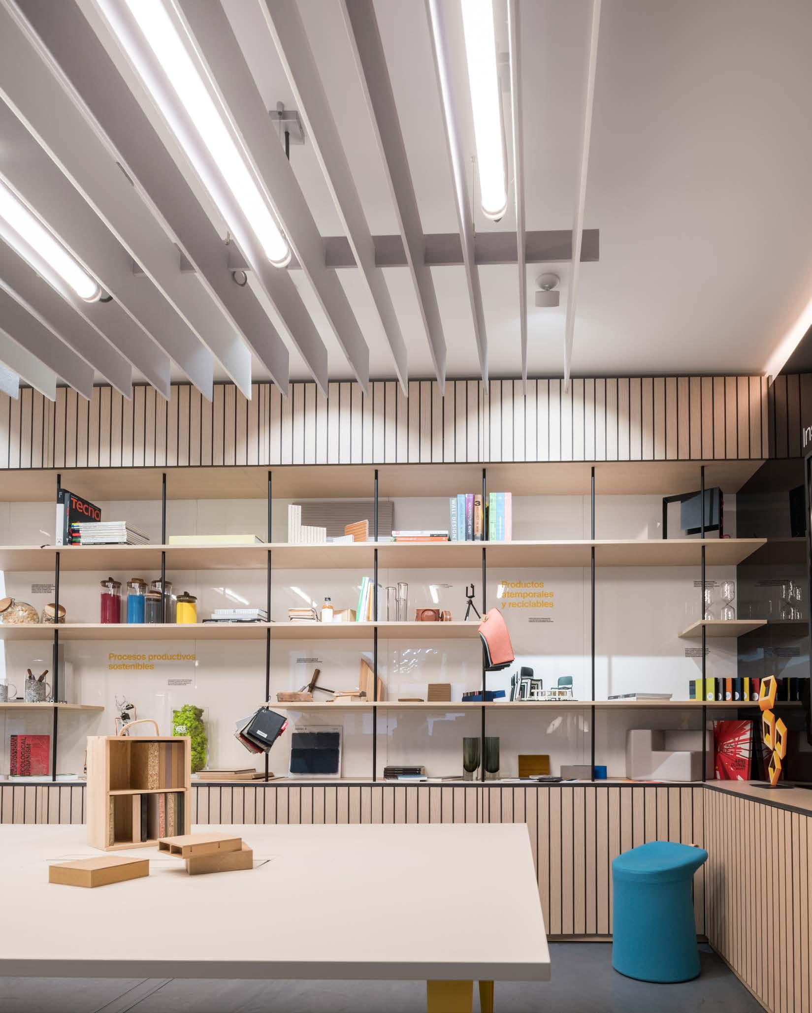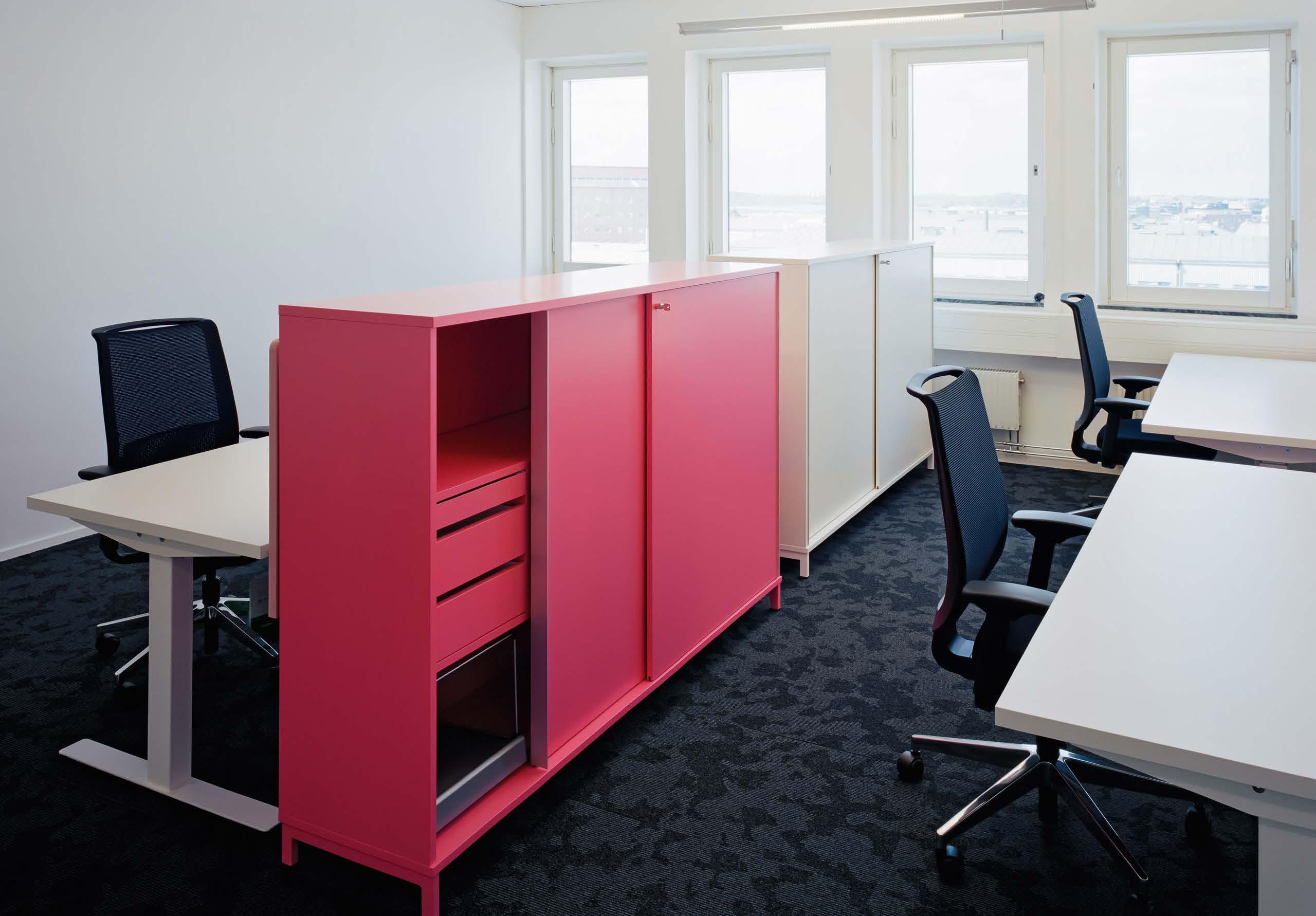 Complementos y elementos que no solo actúan como archivo, sino también organizan el espacio, aportan diseño y contribuyen a la imagen corporativa. Véase la integración del archivo con las mamparas divisorias, constituyendo en sí mismo un elemento arquitectónico.