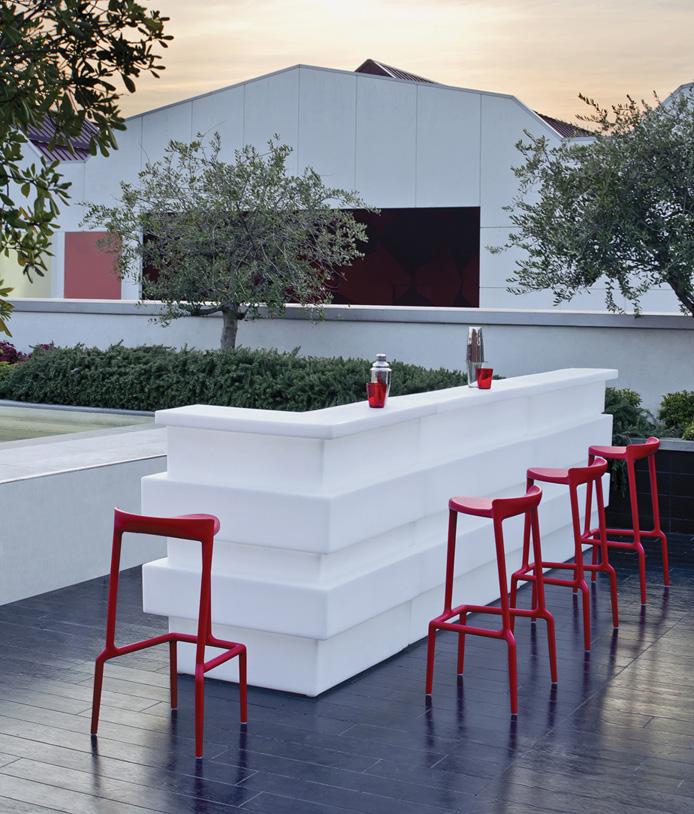 ↑ Pedrali Barra retroiluminada Iceberg & taburetes Rubik → Pedrali