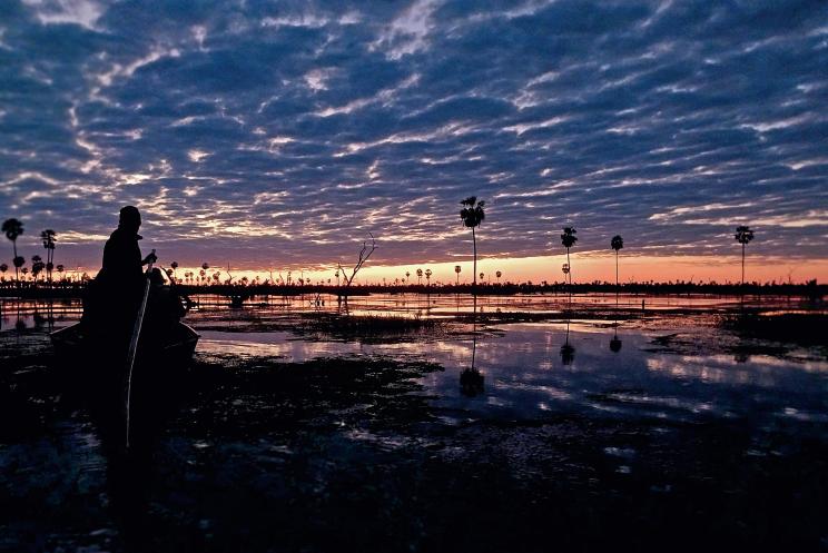 Navegamos en las aguas del Bañado La Estrella, en medio de sus árboles muertos aún de pie, invadidos por plantas trepadoras. Este humedal es considerado una de las Siete Maravillas Naturales de Argentina.