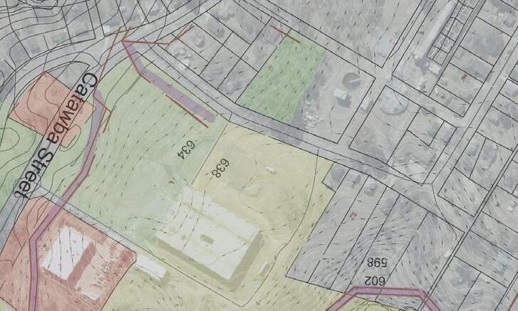 ProposedGreenway/PedestrianBridgeAlignment 1' 5' AffectedParcels BuildingsonAffectedParcels ProposedContours 1'