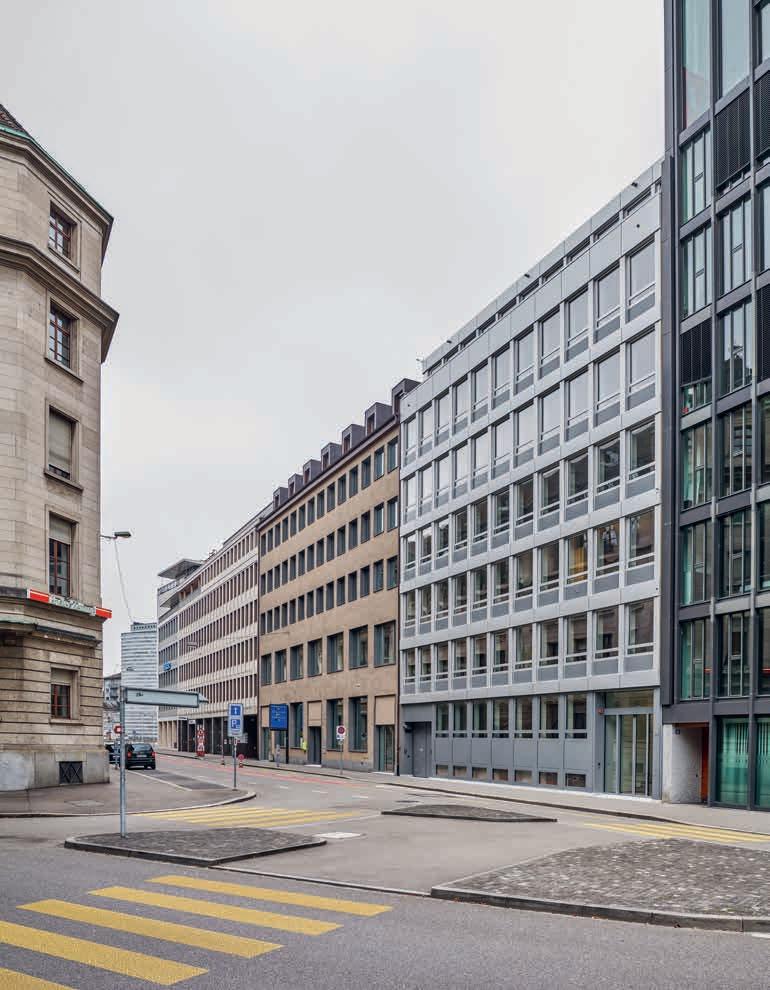 Costruito nel 1966 da Vischer Architekten, dopo soli trent’anni la facciata dell’immobile era stata sostituita, con una identica alla precedente. A distanza di 25 anni questa avrebbe dovuto essere nuovamente rimpiazzata a causa dell’insufficiente isolamento termico e quindi adeguata energicamente. Durante un primo sopralluogo, Vaner ha però scoperto che la facciata continua era molto sporca. Pur essendo necessarie misure di riqualificazione energetica e il rinnovo di alcune parti, si poteva evitare la sostituzione completa. Un mockup della facciata è stato realizzato nel cortile interno per poter valutare diverse varianti: dalla manutenzione superficiale, alla riqualificazione energetica, fino alla sostituzione integrale. In questo modo si è potuto confermare l’ipotesi iniziale, dimostrando che rimodernare la facciata esistente avrebbe fatto risparmiare oltre mezzo milione di franchi rispetto a una sostituzione completa.