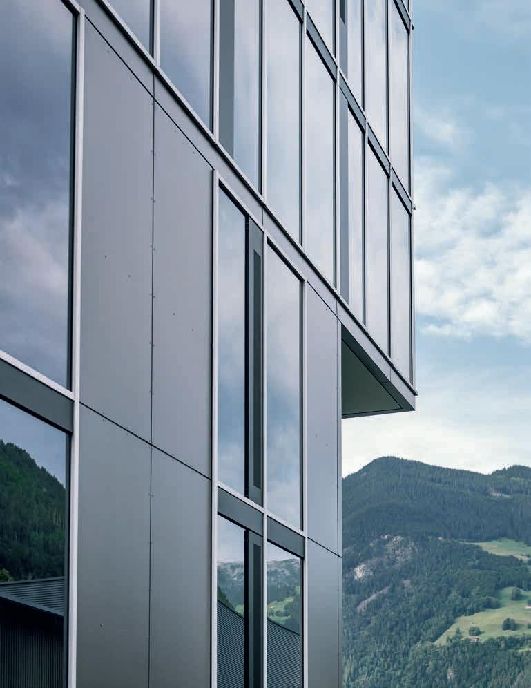 Für das neue Hauptquartier des Bergsportausrüsters Dynafit im bayerischen Kiefersfelden produziert, liefert und montiert Pichler Projects die gesamte Stahlund Fassadenkonstruktion. «Wir realisieren bei diesem komplexen Bauvorhaben alles aus einer Hand und geben dem Design der Architekten Barozzi Veiga seine Form», so Tanja Pichler. Die Gesamtfläche der architektonisch anspruchsvollen Gebäudehülle beträgt rund 6000 m2: ca. 1650 m2 gehören zur Glasdachkonstruktion und ca. 4350 m2 sind vorgehängte, hinterlüftete Blechfassaden.