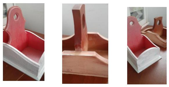 En los talleres a las y los jóvenes les ha motivado trabajar en distintos soportes de madera. En la imagen se observan cajas de té, luego fueron trabajadas en técnica de decoupage