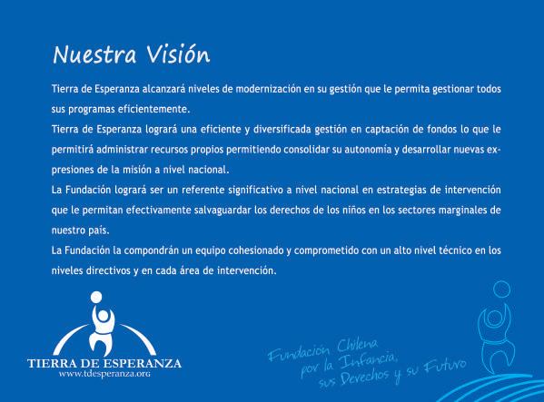 La Fundación Tierra de Esperanza logrará ser un referente significativo a nivel nacional en estrategias de intervención que le permitan efectivamente salvaguardar los derechos de los niños en los sectores marginales de nuestro país.