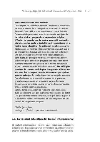 3.2. La vessant educativa del treball internacional El treball internacional exigeix unes pràctiques educatives específiques. En aquest apartat treballarem aquestes pràctiques pròpies al treball internacional així com aquelles que ja utilit-