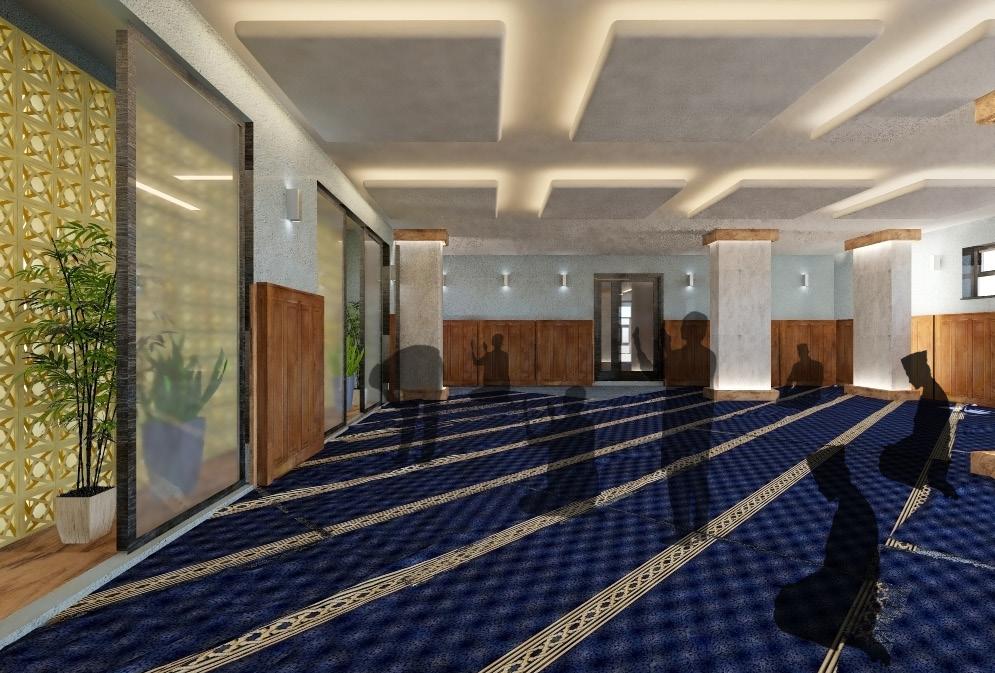 The prayer space at Kabul’s orphanage balances privacy and natural light within a compact design. Brick screens provide seclusion while casting intricate light patterns, complemented by wooden elements that add warmth. Durable and weather-resistant, the brickwork draws inspiration from Mamluk patterns, with dashed outlines integrated into the stone to reflect the motif.
