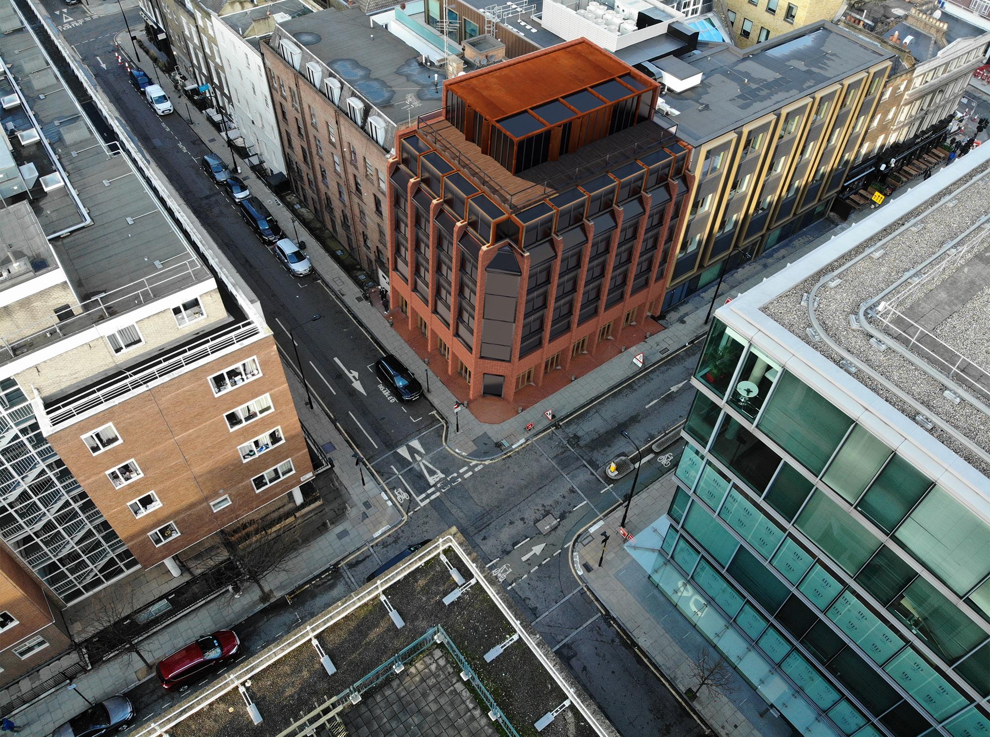 The design focused on refurbishing the building and introducing a rooftop outdoor area, best conveyed to the client through section renders.