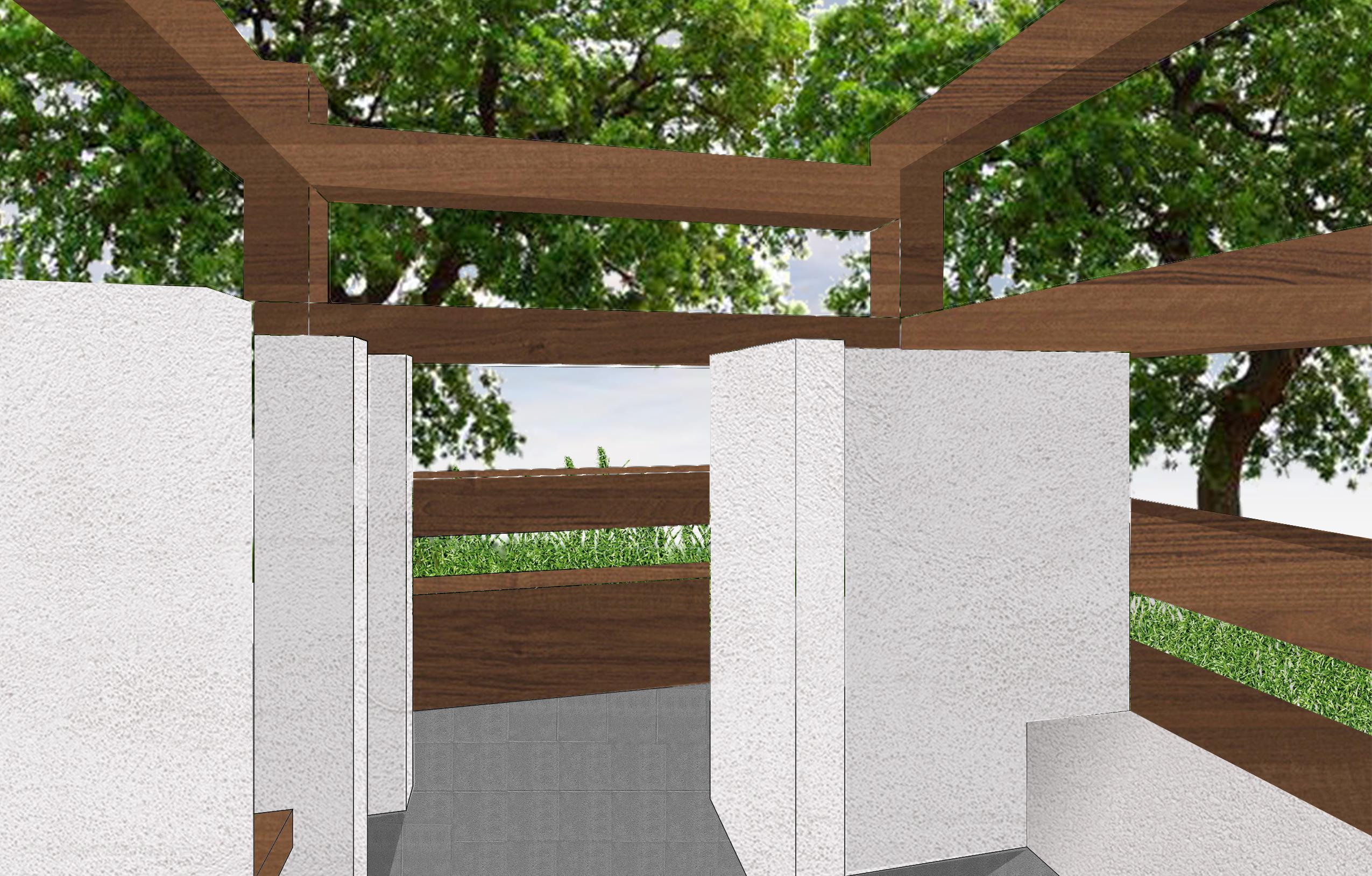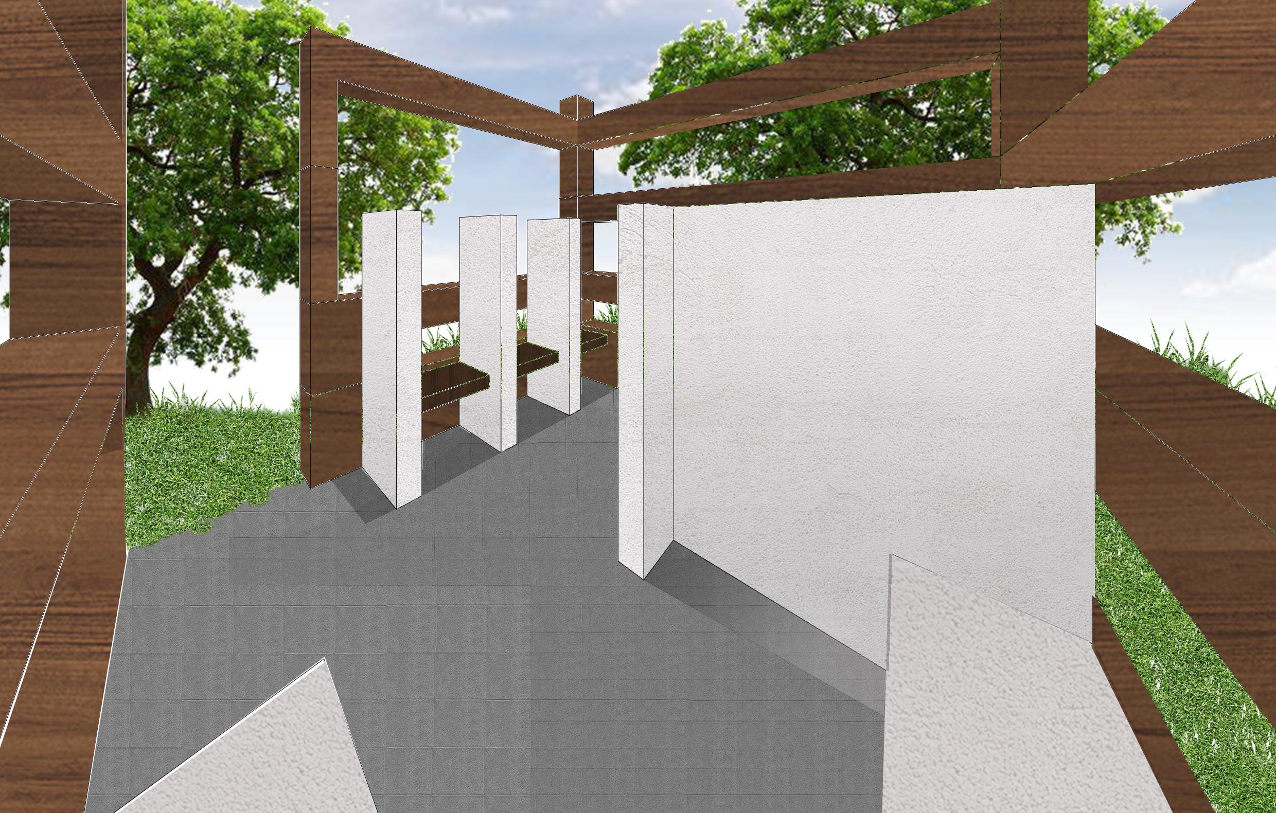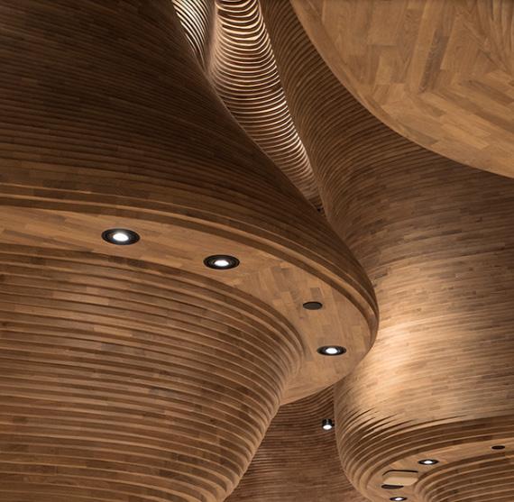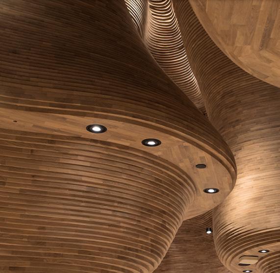 horizontal voids between beams represent the space for new wood to be formed. The concrete material symbolizes the central pillar of the tree. The center will not decay or lose strength while the outer layers are intact. The wood material represents bark, the protective layer of a tree. Vertical wood beams increase in stimulatingsymbolizingheightthegrowth cells inside a tree trunk. The horizontal beams symbolize the new wood that forms in the tree trunk.