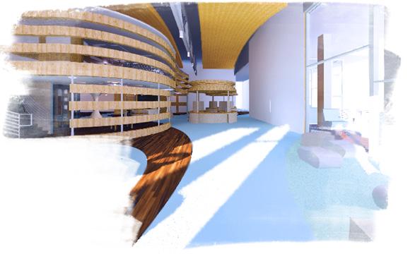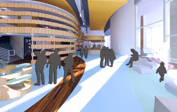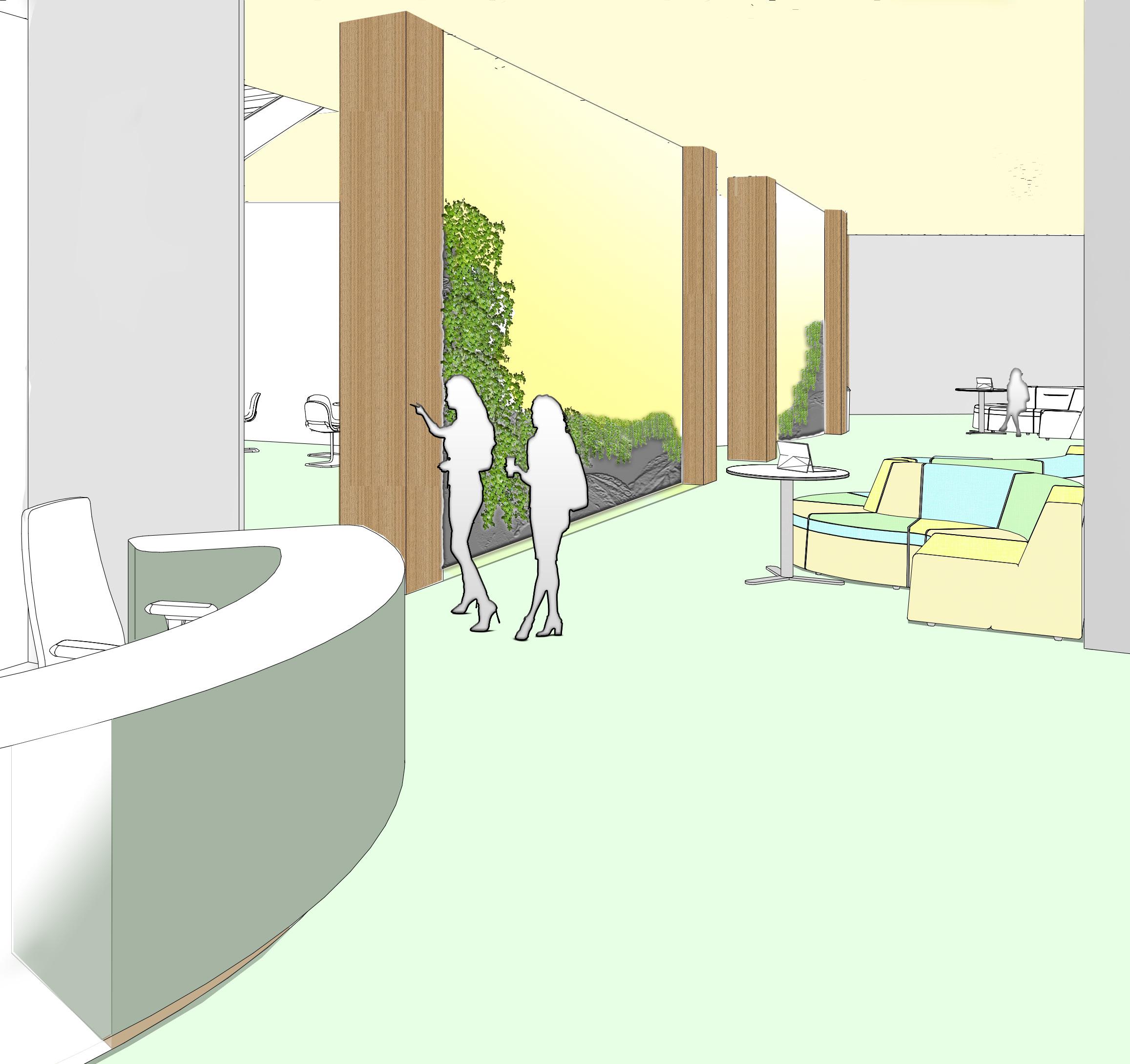 GROUND LEVEL HEALTH SUITE ENTRY ORIGIN (KORU): REPRESENTS THE FROND OF THE NATIVE NEW ZEALAND FERN