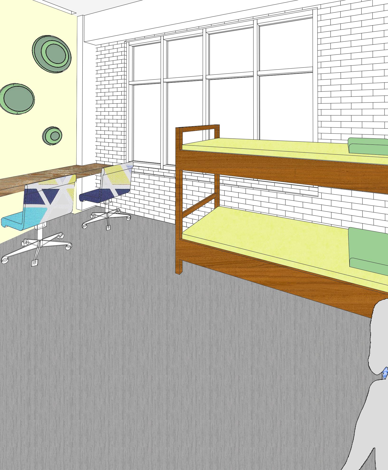 Residents have the option to personalize their bedroom. Controlling the aesthetic of the living chambers allows an opportunity for the residents to become more empowered within their space. Personalization enhances each individual’s voice and choice.