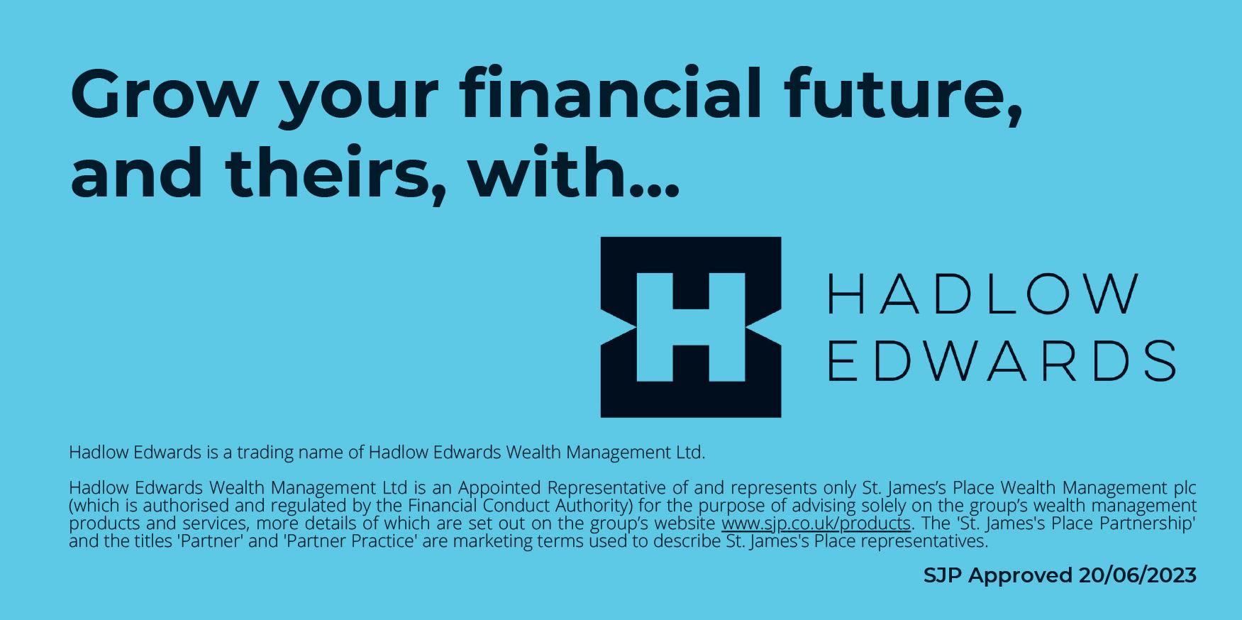 Hadlow Edwards Wealth Management Limited is an Appointed Representative of and represents only St. James's Place Wealth Management plc (which is authorised and regulated by the Financial Conduct Authority) for the purpose of advising solely on the group's wealth management products and services, more details of which are set out on the group's websitewww.sjp.co.uk/products. The 'St. James's Place Partnership' and the titles 'Partner' and 'Partner Practice' are marketing terms used to describe St. James's Place representatives.