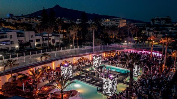 There can be few more fulfilling things to do in Marbella than to spend an afternoon with friends in this haven of elegance and sophistication. Rent one of their many giant circular sunbeds around the pool and enjoy chill out music with cocktails and Champagne, or savour a leisurely lunch at signature restaurant Amaï. You will enjoy luxuriating in a rarefied atmosphere, where the music washes over you and you can feel the bass in your stomach. This is a hangout for beautiful people who are very much in evidence. There are also regular guest DJ sessions and special events. ›