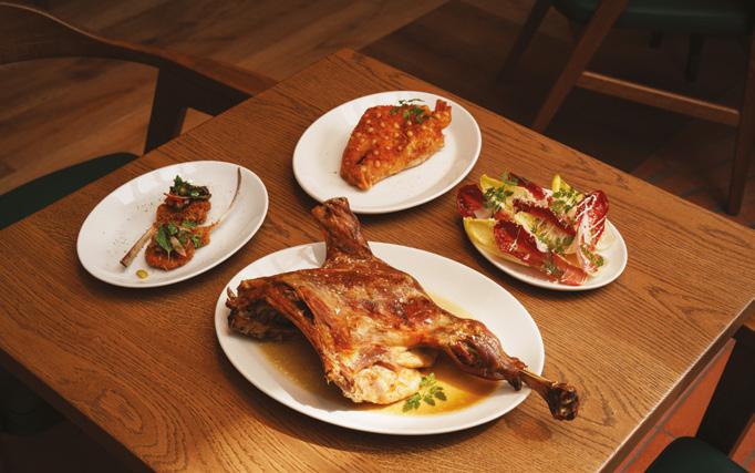 specialising in 100 per cent Iberian pigs that roam freely in the dehesa of Extremadura. Equal attention is devoted to Legado’s seafood and fish offerings, with a menu celebrating the country’s diverse coastal cuisine. Dishes include tiny, translucent, crisp, crystal Mediterranean prawns, finished with smoked paprika and Moscatel vinegar, or confit lobster with chilli and garlic on a base of thinly sliced rose potatoes – each topped by an egg. The grilled catch of the day is served by the half with an Ajada sauce from Galicia. There is also a wide array of delectable vegetable and salad dishes and seasonal desserts. ›