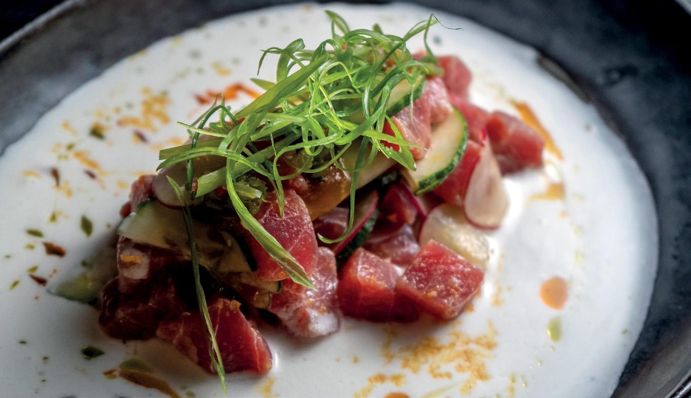 The Tuna Ceviche really hit the spot, with tiger coconut milk and a mango