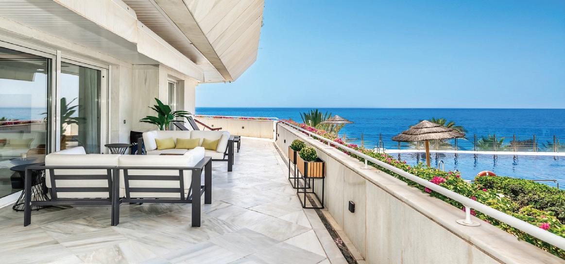 Golden Mile · Beachfront: Luxurious beachfront apartment in an exclusive gated community with a large terrace and panoramic sea views. 4 beds, 3 baths, living area approx. 210 m², terrace approx. 100 m². Price: €4,950,000, E&V ID W-02WGMJ.